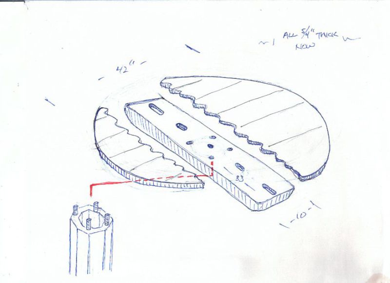 None of my solid top tables (as far as I know) have ever gone out of plane (warped), but for some reason, just before I was to glue this one up, I got insecure about committing to it and thought I might as well check in with the guys. These are 5/4 now. My original intention was to take them down to a finished 1 and 1/8th. I do think thicker would be more stable, though. They were kiln dried. I'd love to keep the wide planks for the aesthetics alone. Below is a sketch of how it comes together. The stretcher (underneath) will have recessed slots for a screw bolt with washer to hold the top down to it and be able to move throughout the seasons. I'm making this up as I go so I'll listen to any and all suggestions.