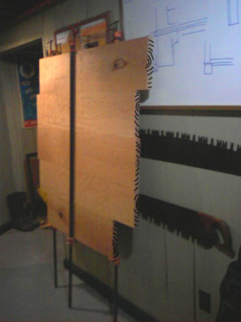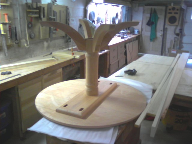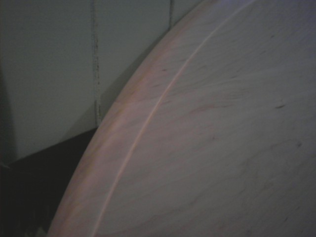 2. We need to remember the final object is a circle within this roughly square glue-up of planks. The center clamp was doing 70% of the clamping. (Now that I think of it, that is where I could have had two clamps on opposite sides.)