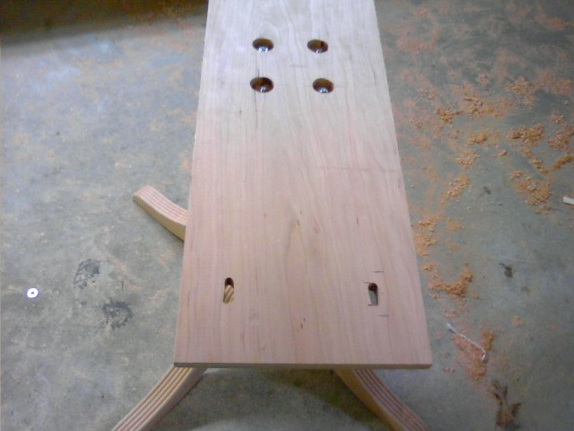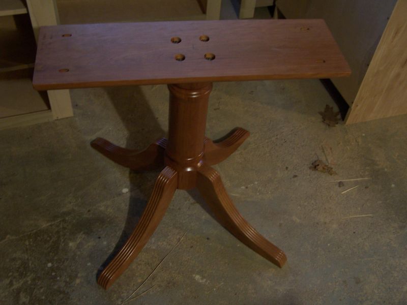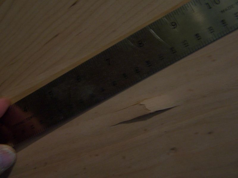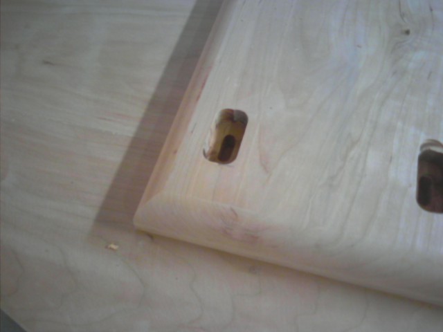 The bolt didn't come through all the way but I did lift and split some of the cherry (1/4"). I placed some glue in the hole on the bottom side, blew on that hole until a tiny bit of glue showed on the face and then I turned the table top good side up and placed a block of wood to the area and used a hammer to knock it back flat. I wiped it good with a water soaked rag and left it to set up. You can't even see the spot, but I'm not out of the woods until some stain goes on and we see if any glue has stopped stain from taking in a tiny area. I should have marked the bolt with tape to indicate how far in I was allowed to go.