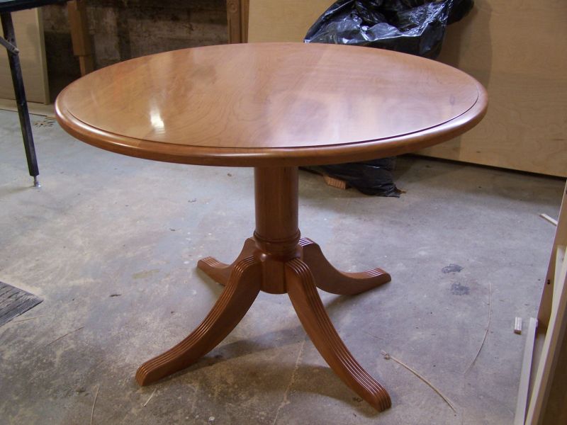 I'm building a 42" round, pedestal dining table, 5/4" in finished thickness and it’s cherry. I'm buying the column and legs so I only have to make the top. No skirt. Just a single center 'stretcher', sitting underneath at 90 degrees to the table top's planks. My boards are (after dimensioning) a bit under 10" wide, no sapwood (believe it or not) and are dead true now (straight and square). They are laid up with an alternating growth ring set up that still affords me seeing only the heart wood showing on the top face (see photos - I've taken a marker to the boards ends to show the ring's directions). I want the top to remain on an even plane, period.