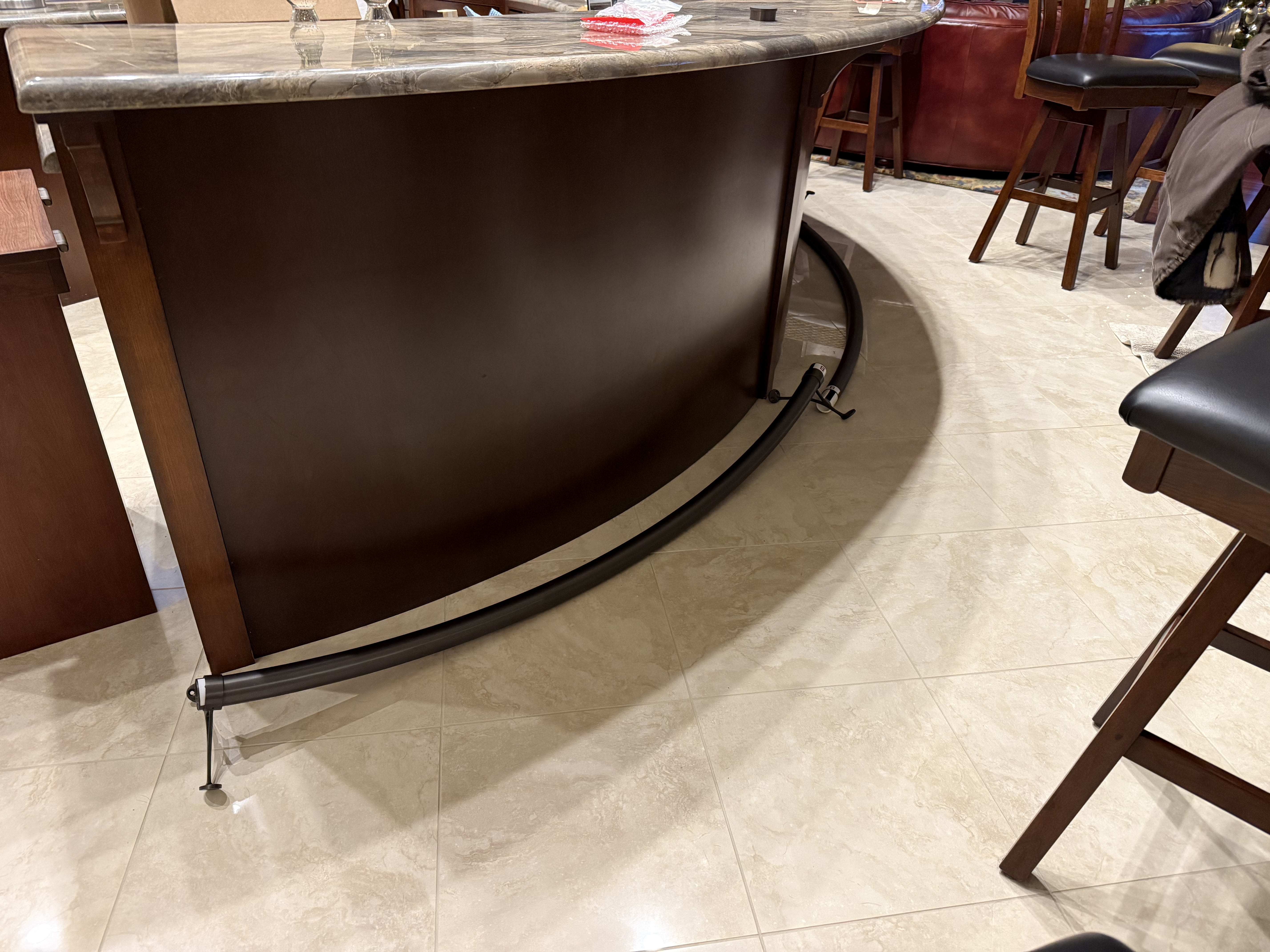 I went to a job the other day where a customer had a big radius wall in the kitchen and they had their countertops replaced. The countertop company I’m assuming used some type of laser device to measure the radius of this big wall, so the customer could order a curved foot rail to go around it.