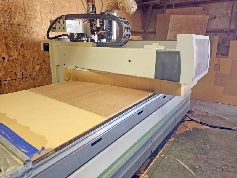 4' x 21.3' with (2) 10' Long Flat Table Workstations: "GANTRY TYPE" "Phenolic" Table machine for Nested Base Manufacturing.