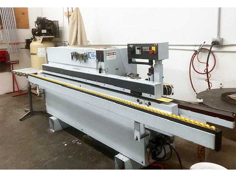 0.4 - 3 mm (1/8") Edge thickness cap., automatic coil & strip feed magazine, guillotine for 3 mm PVC banding, fast startup (12 Min heat up) glue system; reversible rotation glue applicator roller. Workstations: Vertical travel double motor front & rear end trim, 0.25 HP - 12,000 RPM motors. Top & bottom flush/bevel trimmers, bevel 0° to 15°, 0.35 HP - 12,000 RPM motors; top & bottom PVC scraping unit for up to 3 mm radius; top & bottom buffing unit, 0.15 HP - 2,750 RPM ea. motor.