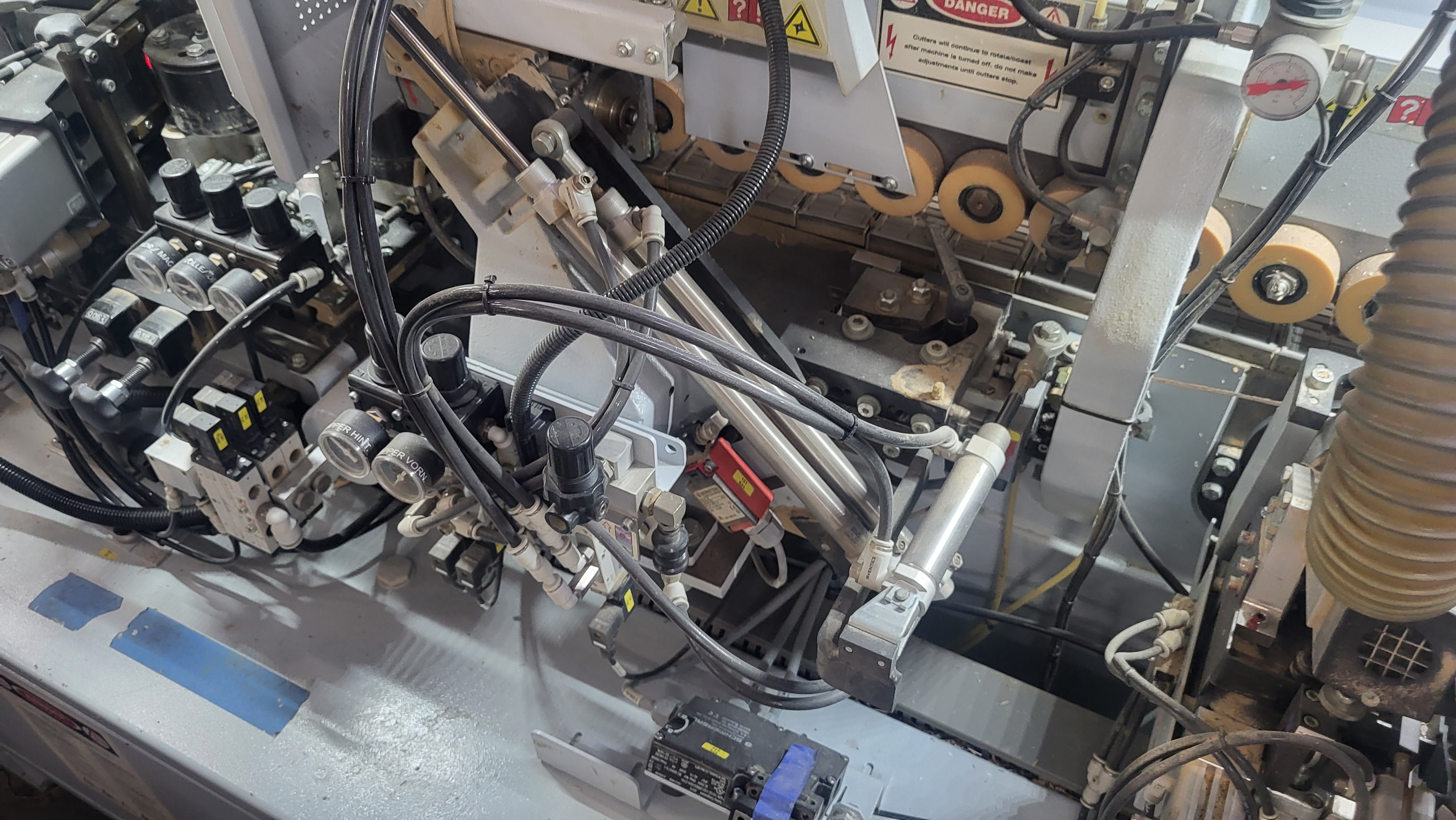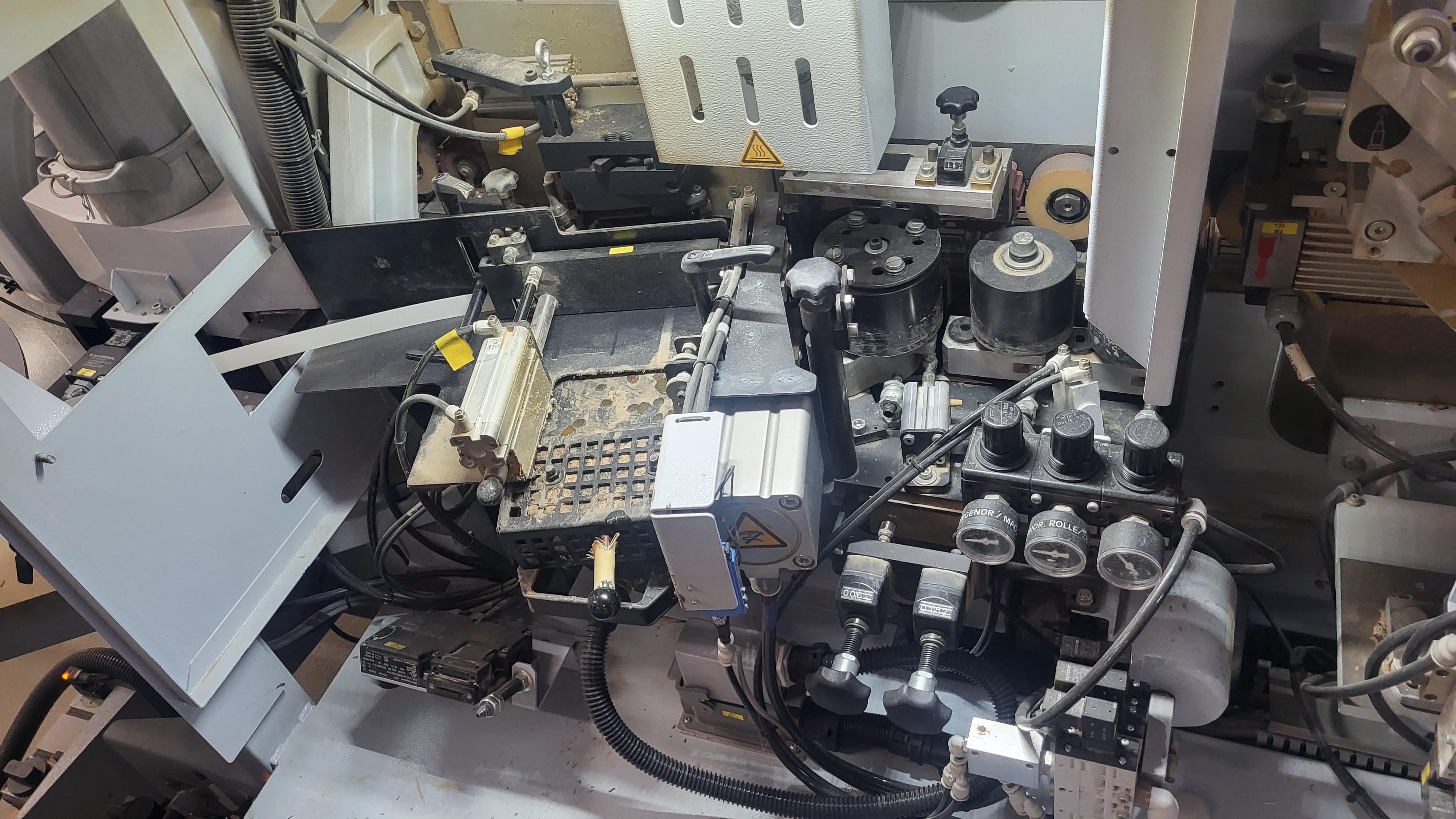 Glue system: EVA hotmelt glue pot. ALSO EQUIPPED WITH AIR TEC for use with pre-glued edgebanding