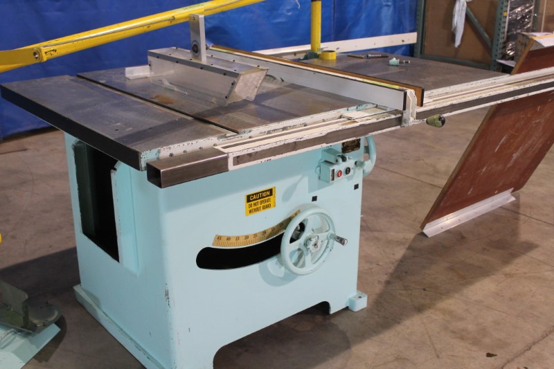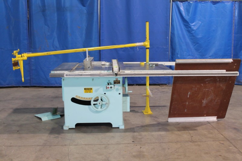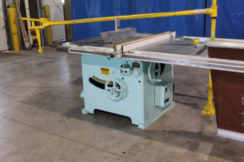 5 HP - 3,600 RPM Fan cooled motor, 1" right tilting arbor Table Saw with a 1-piece main table; table size 42" wide x 44-1/2" deep.
