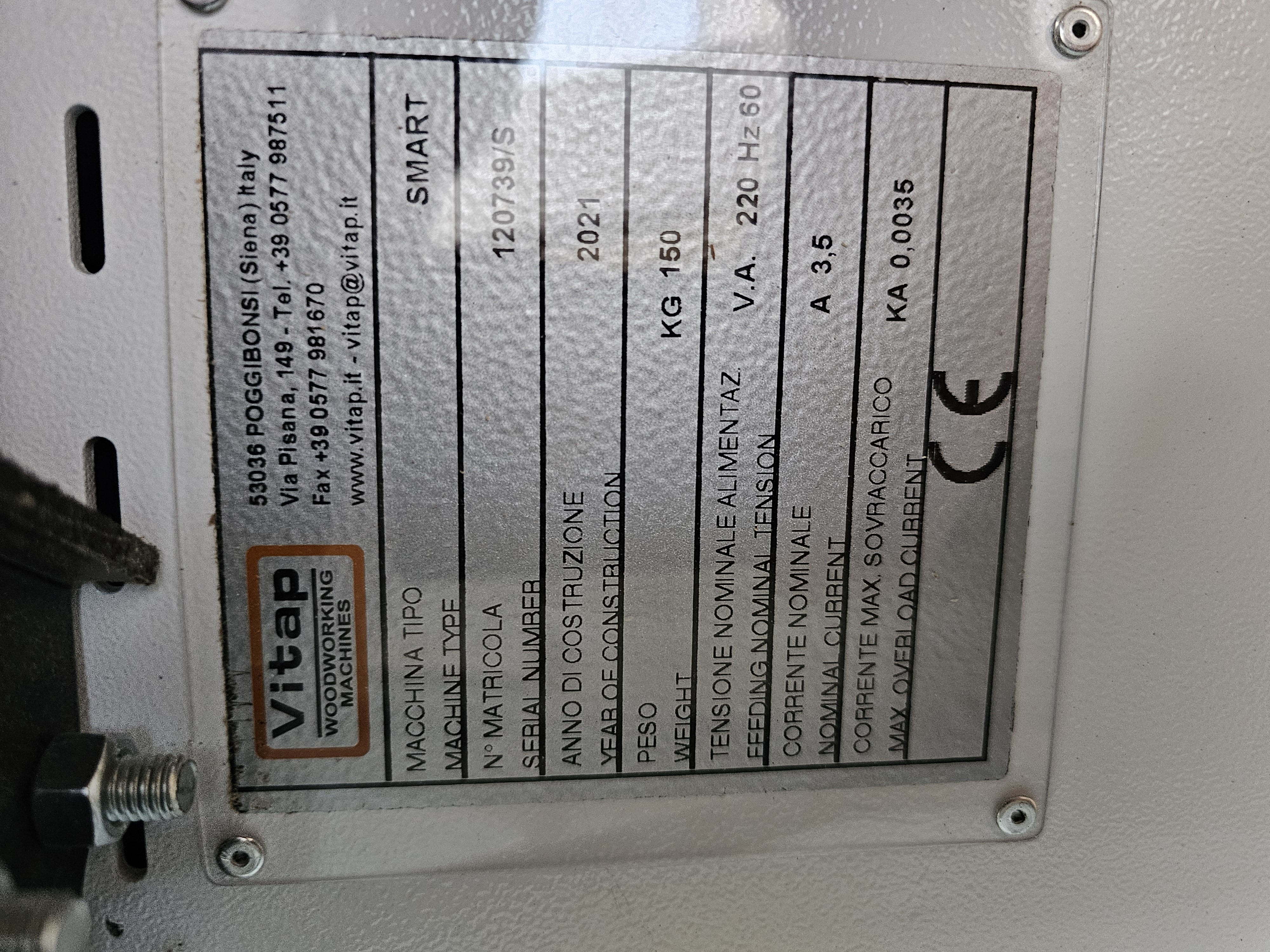 Vitap Smart contour edgebander. Bought to use on 1 job. Made a subtop that angled so I could do beveled edge doors. Worked great for that. In like new condition Machine has less than 4 hours on it. Fast heat glue pot Applies banding only. Has automatic feed and guillotine 230v 3 phase On mobile base. Moving my shop and won't have the space or need for it. Will pallet for free. Crating for material costs. Forklift on site to load.