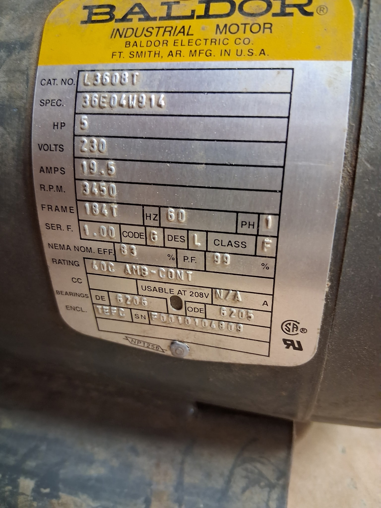 5HP 230V SINGLE PHASE 184T FRAME 3450RPM