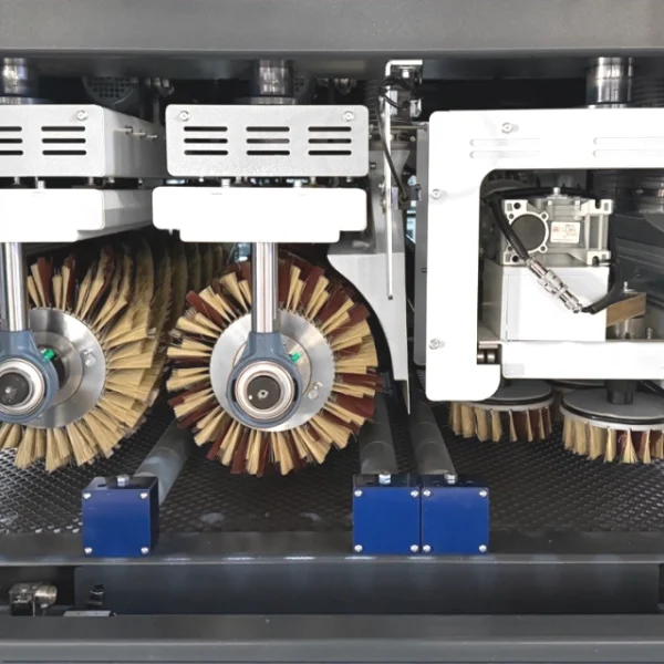 The SB Series features heavy duty construction, a small footprint, and the machines can be fitted with a wide range of abrasives and heads. Replacing the abrasives is as easy as sliding out the station and inserting into the quick-change hub. One machine can be used for whitewood sanding, sealer sanding, and denibbing.