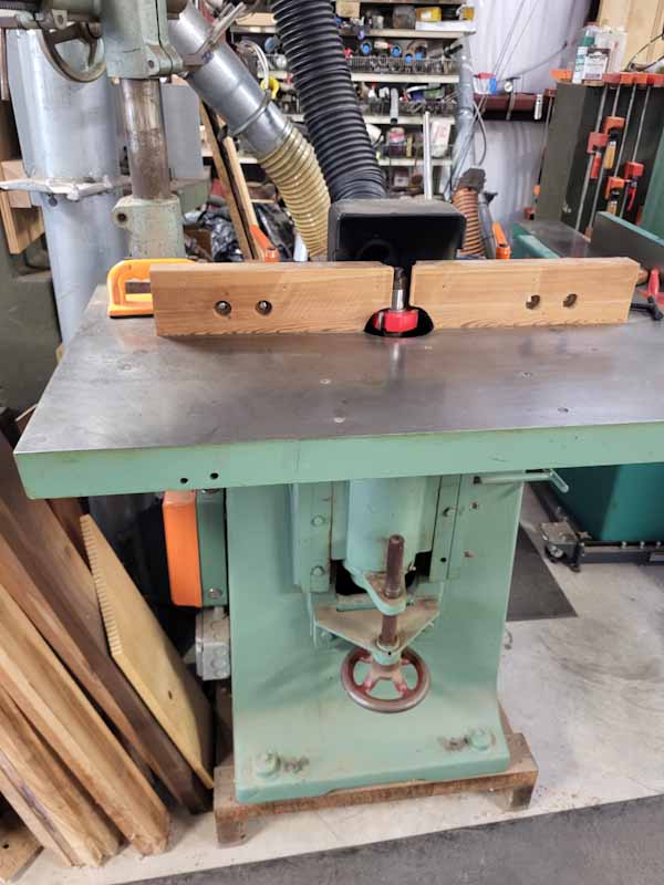 American Made Production shaper ready to work - 7.5 HP motor. Spindle is 3/4". I added T-slot brackets to fence recently (see photos). Comes with custom oak base ( fits narrow pallet jack). Cutter, feather boards and feeder are not included. Feeder is available separately.