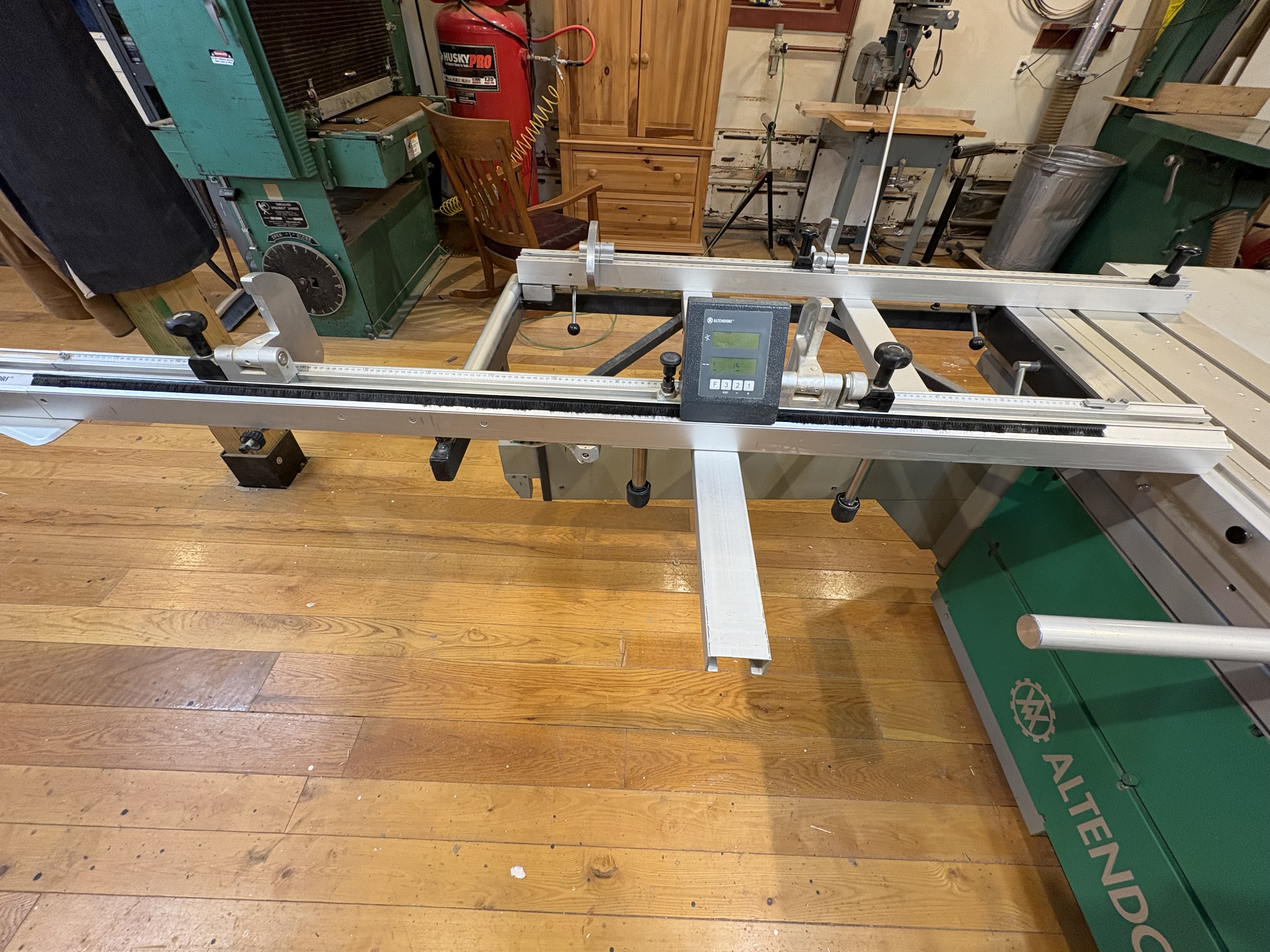 Digital cross cut fence from a mid 2000’s altendorf f45. The digital display circuit card does not work, but the flip stops and the cross cut fence itself are all in excellent condition and it certainly usable without the digital display The scale is a metric scale, not an inch scale Pick up preferred but can make arrangements for shipping. The shipping cost is not included in the sale price.