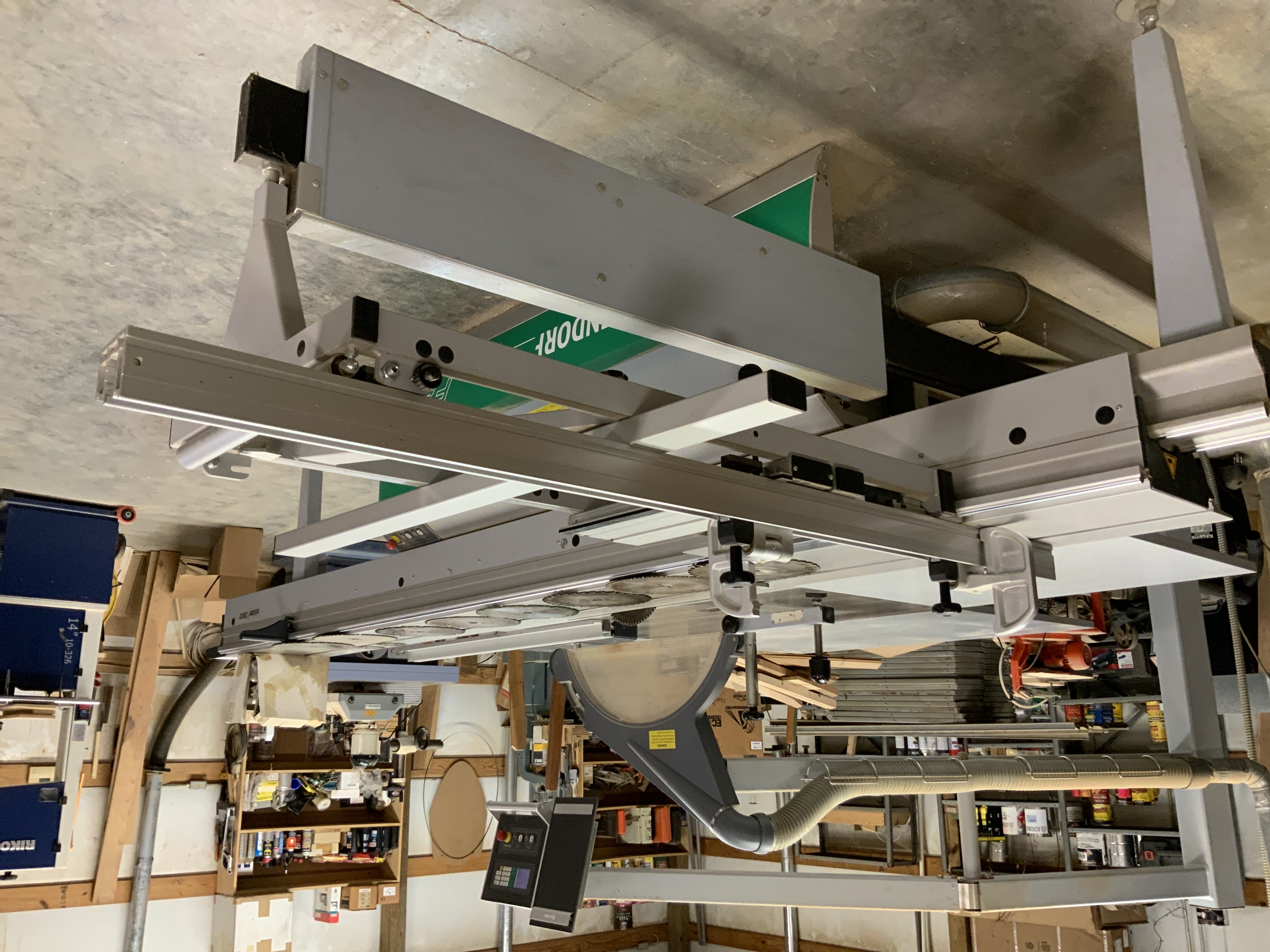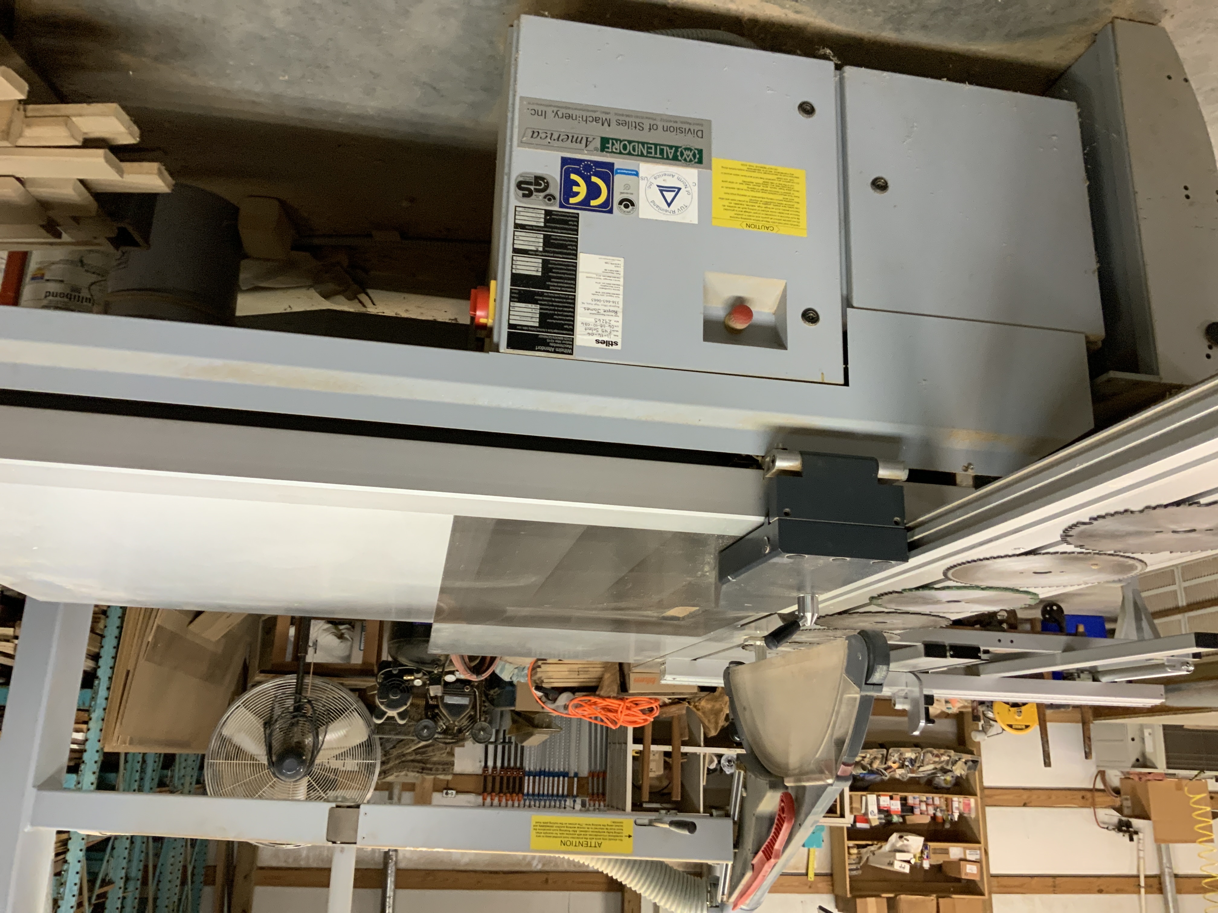 This is a one owner Altendorf 10’ sliding table saw. It is on excellent condition. You push the slider and not the work piece. It is fully automated. You key in the length of the piece you want to cut on the key pad and the fence moves to the exact location. It is extremely accurate. This is an excellent piece of equipment. Also included is 8 spare 12” blades and 2 scoring blades. Buyer to Load and move.