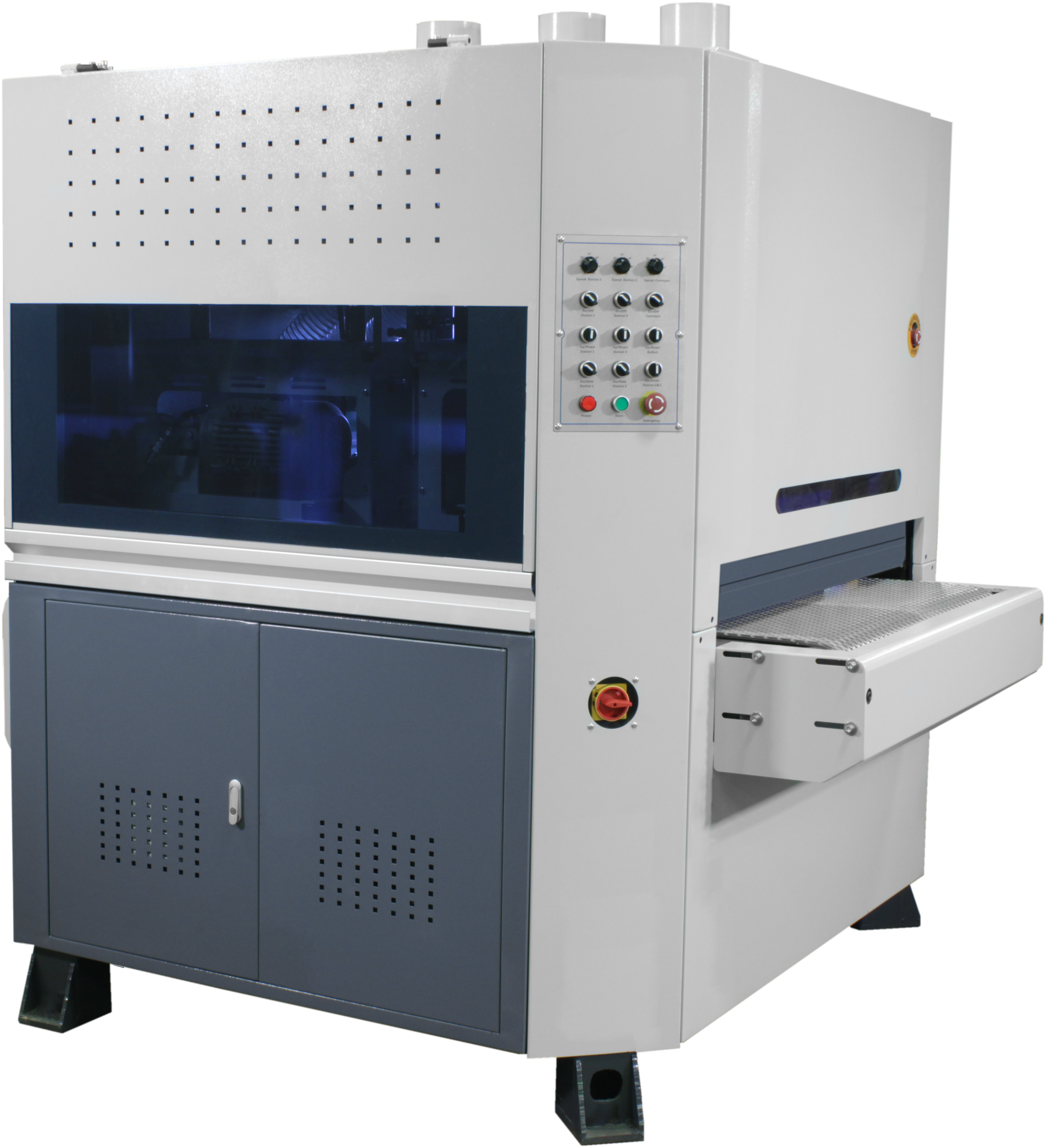 The SB Series features heavy duty construction, a small footprint, and the machines can be fitted with a wide range of abrasives and heads. Replacing the abrasives is as easy as sliding out the station and inserting into the quick-change hub. One machine can be used for whitewood sanding, sealer sanding, and denibbing.