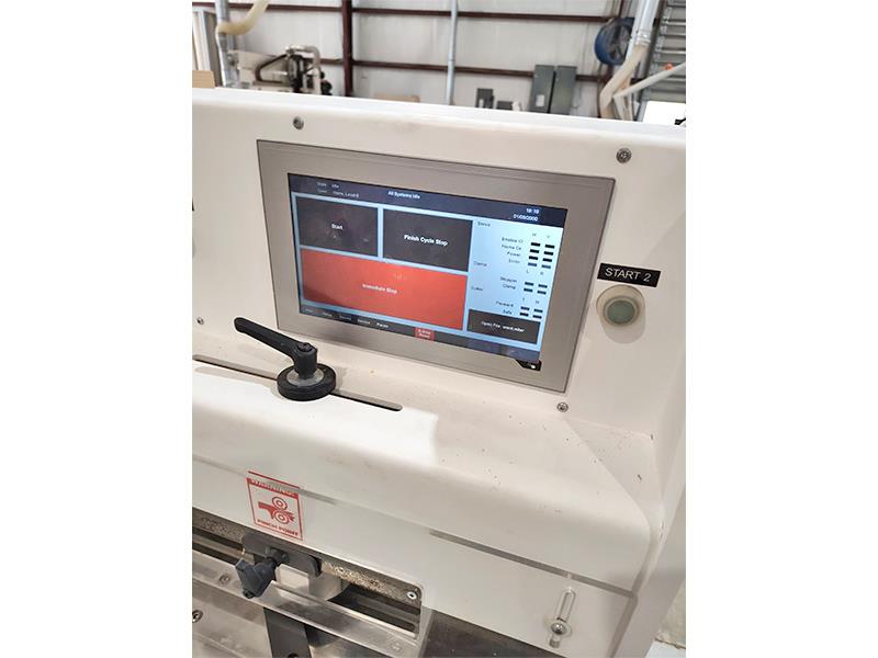 The tenon station uses the same X- and Y-servo-controlled axes as the mortise station and is configured for pneumatically actuated in-and-out movement along the Z-axis. The tenon station is equipped with a direct drive shaper spindle for cutting.