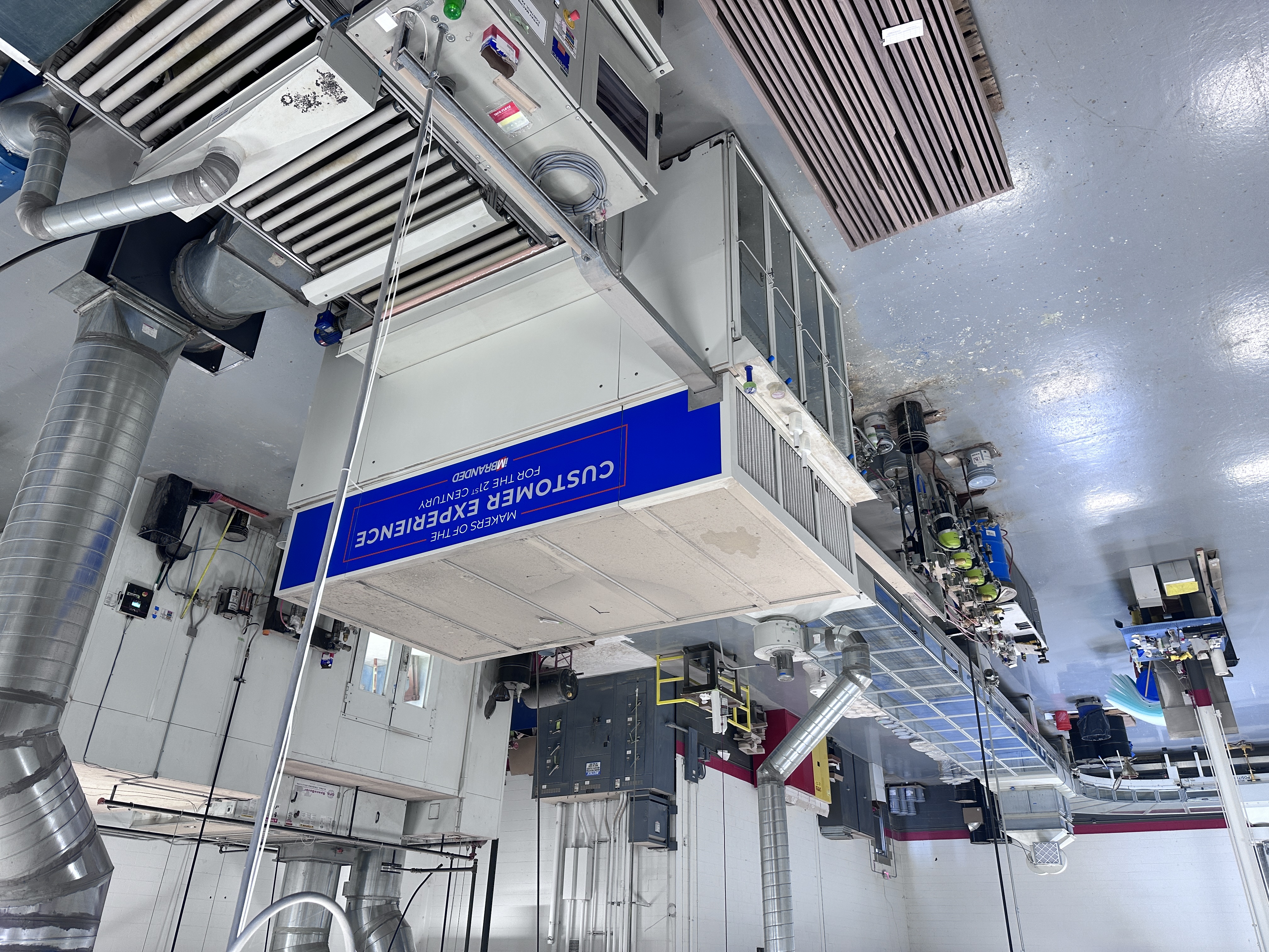 Superfici Finishing Line including but not limited to; Belt conveyor TT1 3500, Deionizing system, Twin Spray reciprocating sprayer, UMI UMA, Laminar Dryer, UMI UMA, UMI UMA, Transition Hoods, UV Dryer twin, Belt Conveyor TT1. Line is U-shaped
