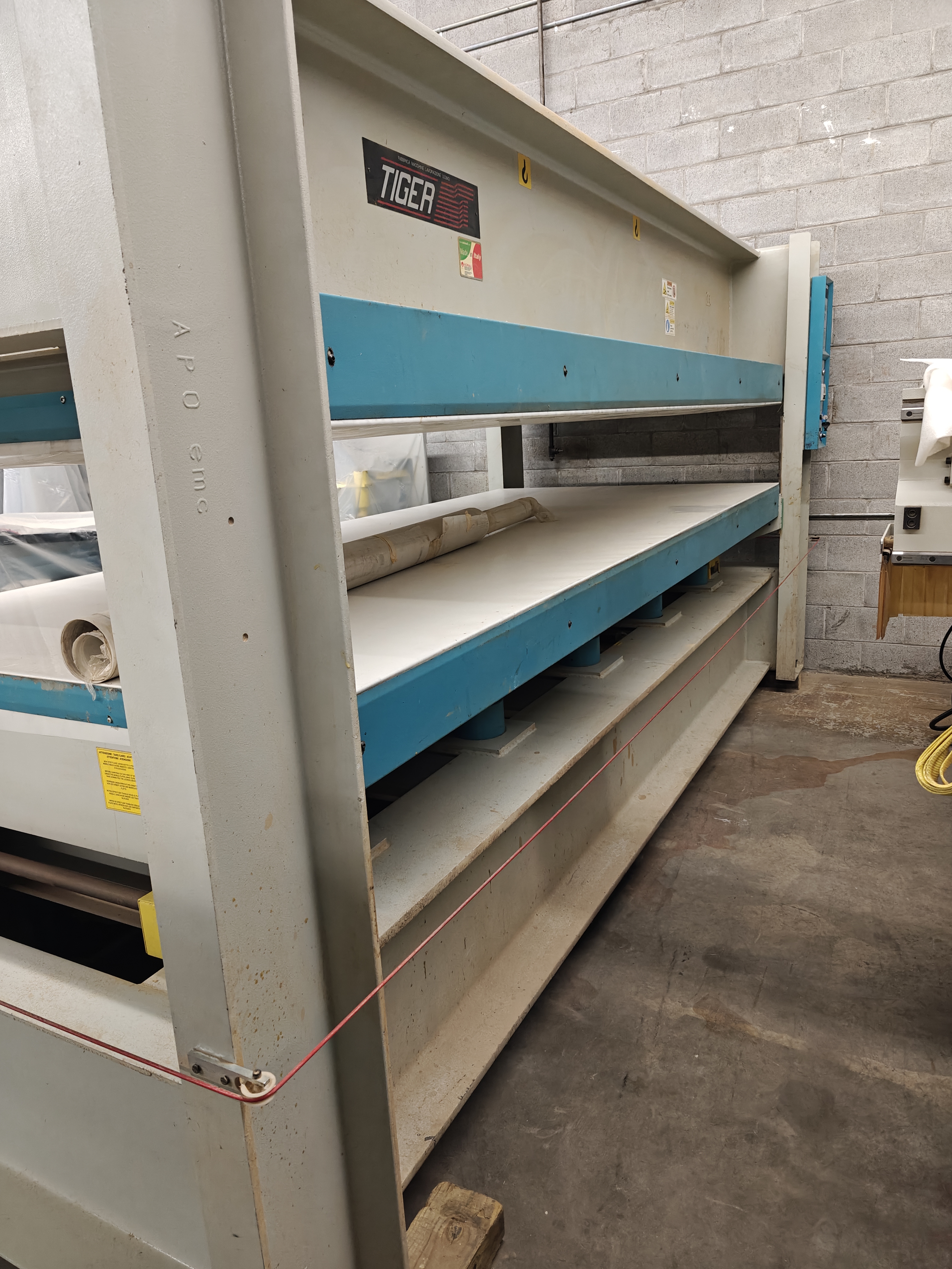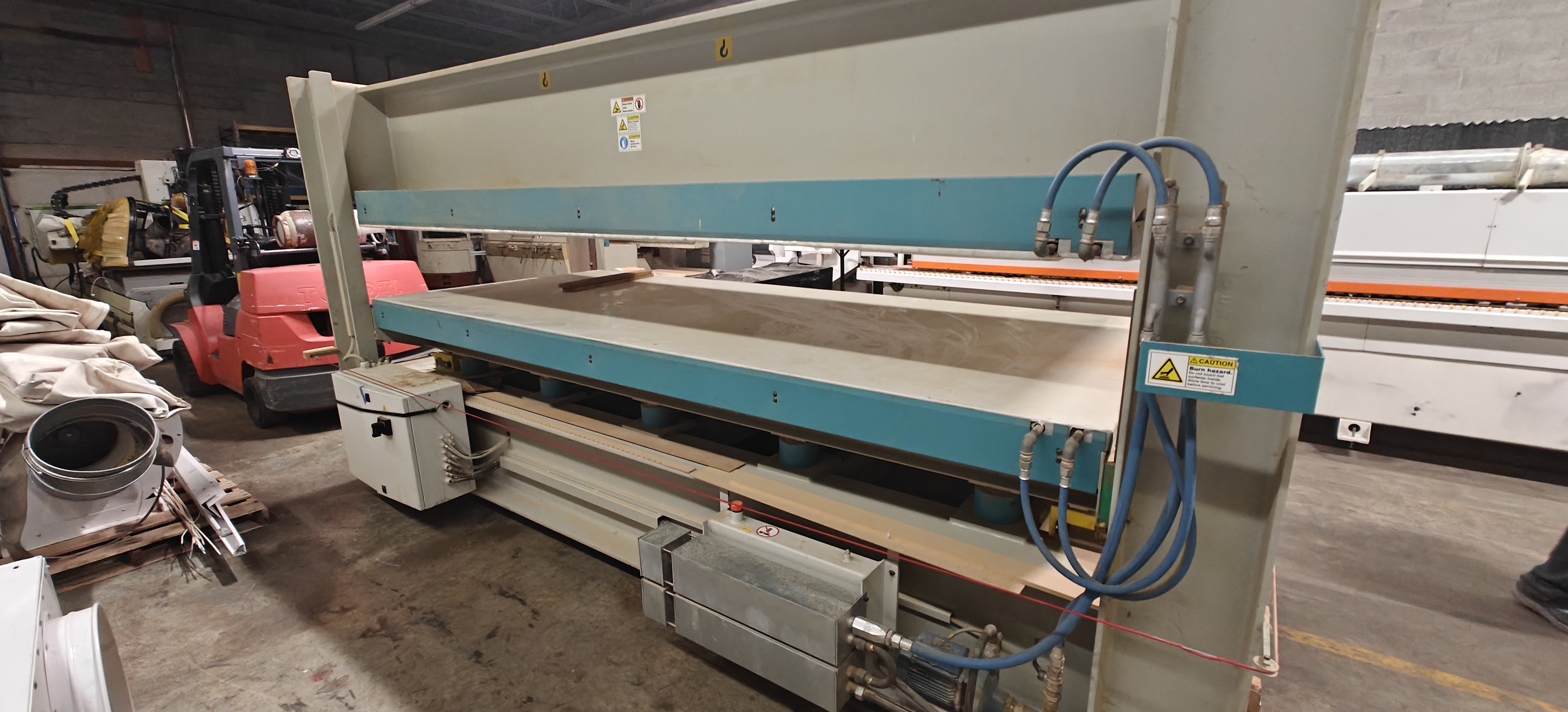 Platens covered with easy to replace, glue resistant Mylar film Self-lubricating corner guides and rack and pinion system to maintain parallelism of the press platens during opening and closing