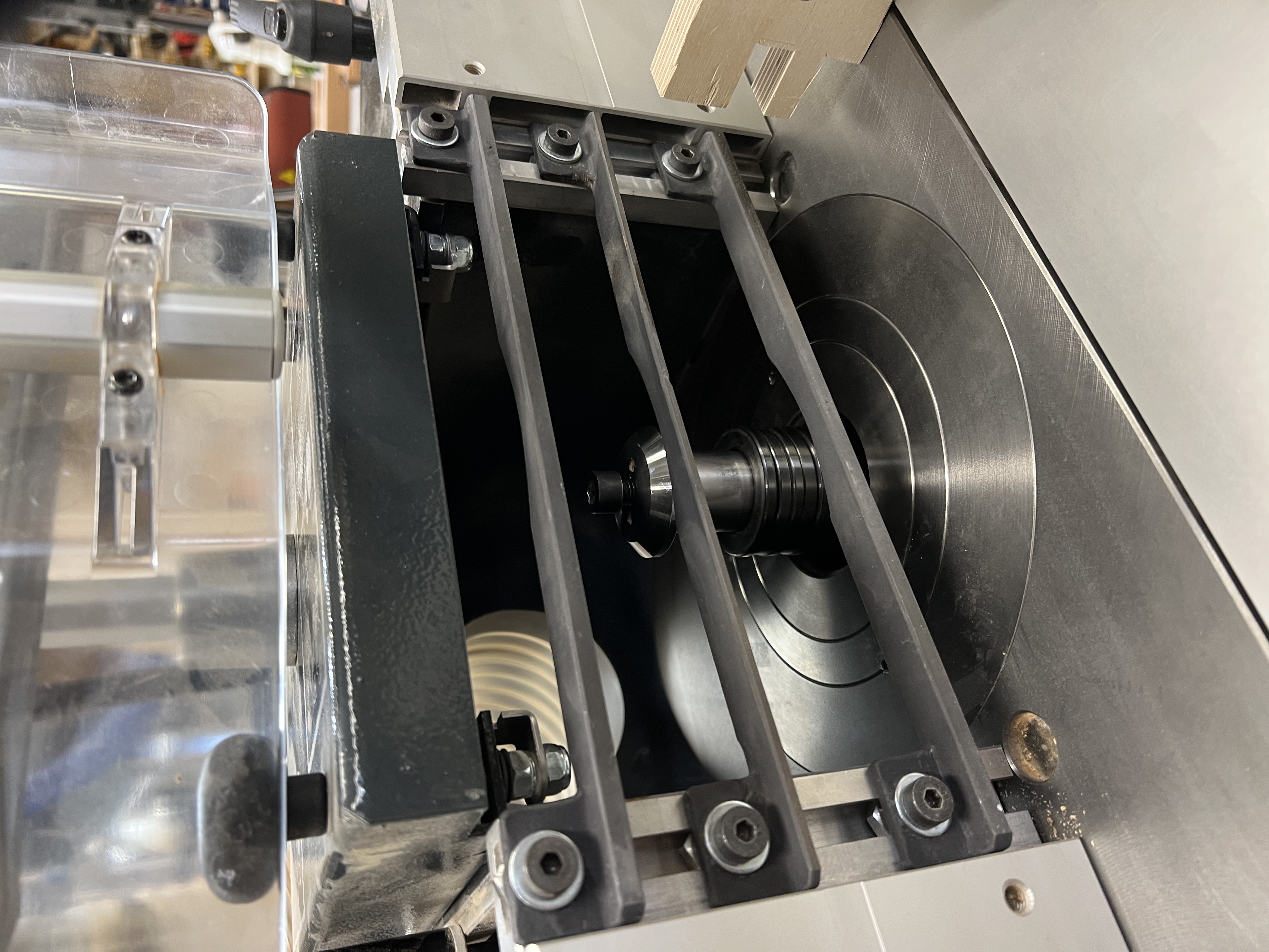Felder F700z Shaper. Purchased fall 2024. Includes 7.5 hp 3-phase motor, 1-1/4 spindle, x-roll table, fine adjustment fence, digital height readout, analog tilt dial, 1100 crosscut fence. Extras include an additional 1-1/4 spindle, workpiece clamp, safety guard fence, and Amana insert rabbet cutter.