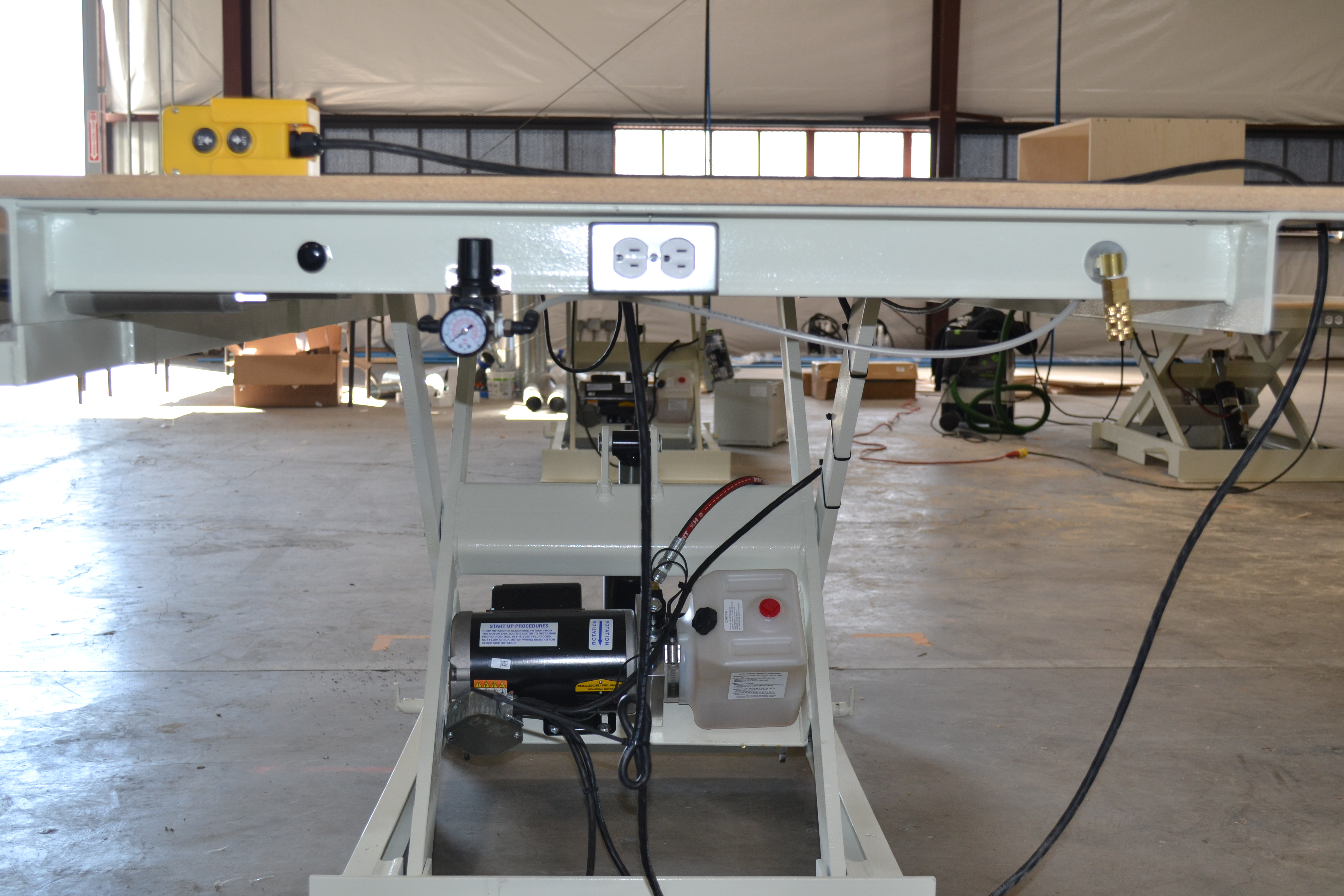 These new work lift tables are built in Northern California by a small specialty manufacturer and offer a unique solution not commonly found on the market. Designed for cabinet shops, assembly areas, and production environments that need ergonomic height adjustment with integrated power, air, and clamping.