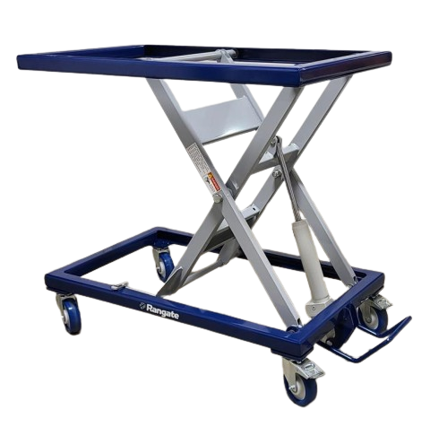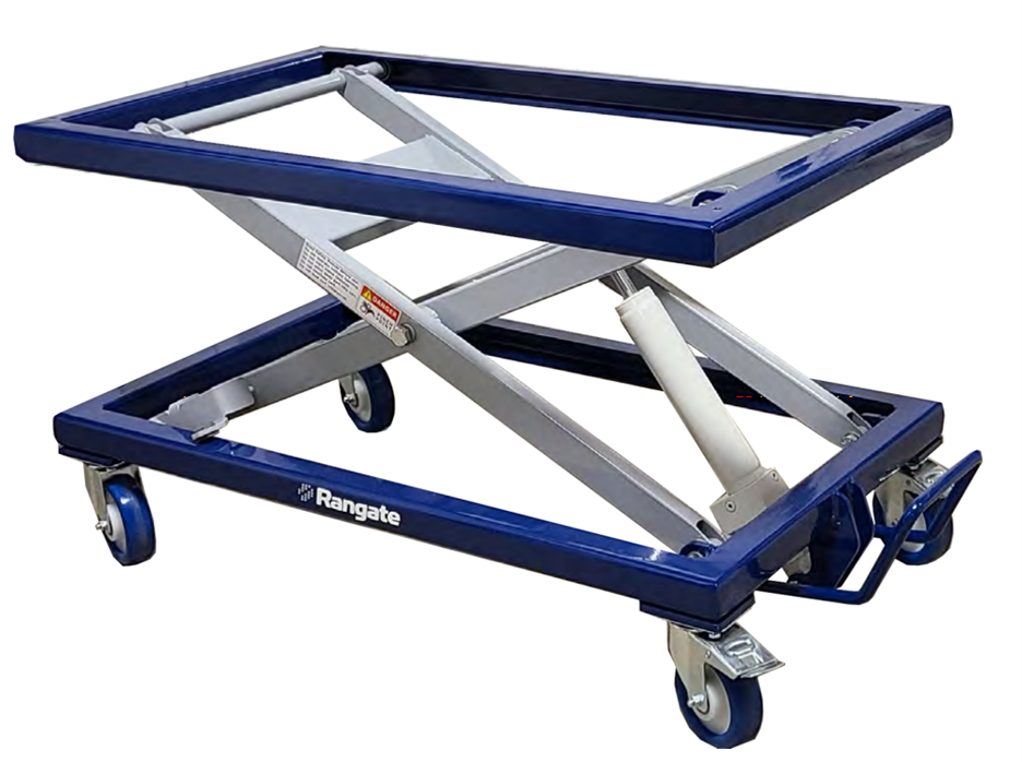 This Rangate Lift Cart 300 is a great, simple shop assistant in a wood shop. The hydraulic lift operates smoothly with a foot bar, and two of the four swiveling wheels have locks. Offered without a tabletop, we provide you a CAD file with reference holes so that you can customized and make your own, most-suited and cost-effective working surface.