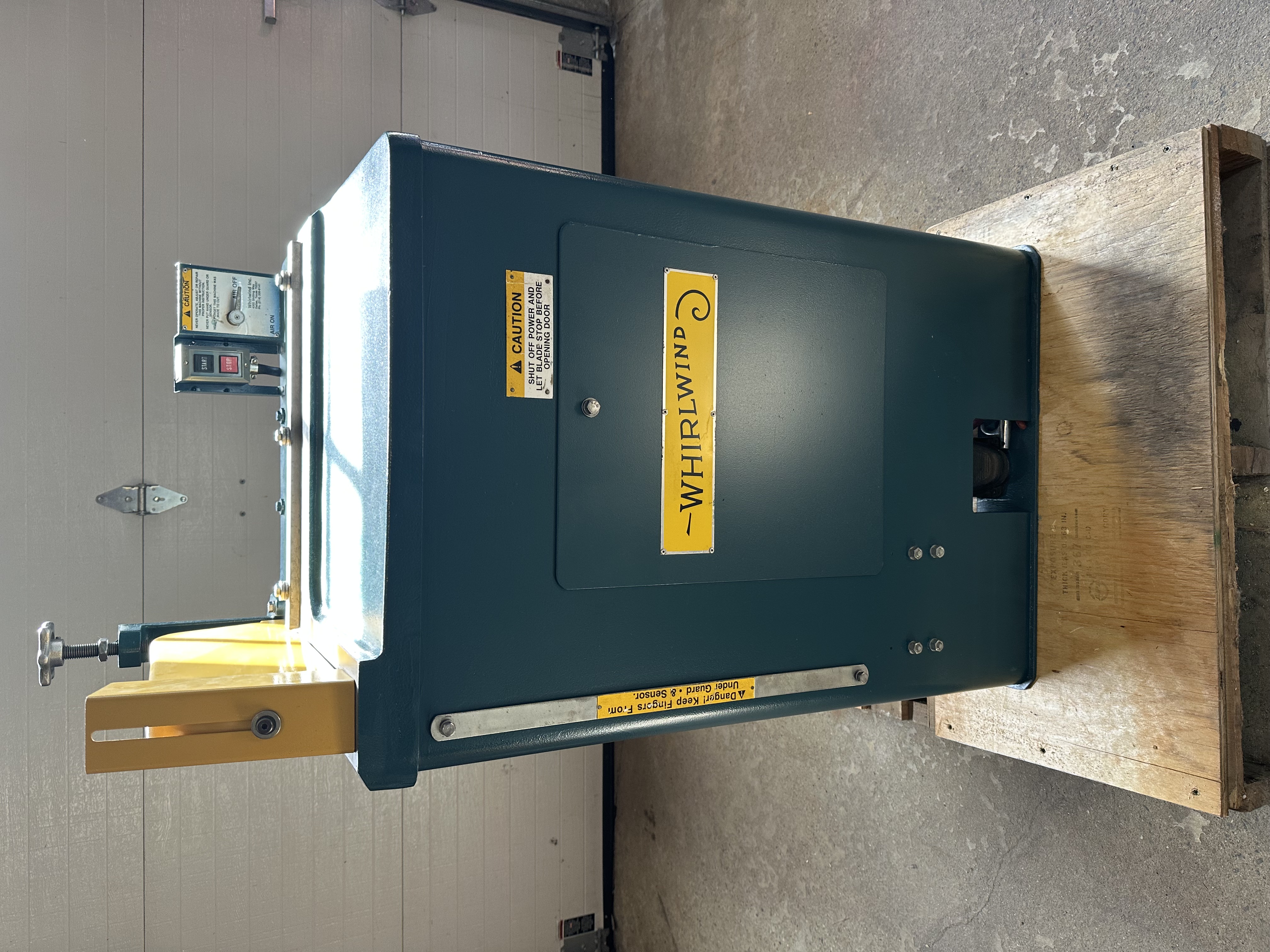 Whirlwind upcut saw with left sided blade. 18" blade with 1" dia arbor. 10hp Baldor 3ph motor 208-230/460. Pneumatic cycle activation with foot pedal control. Material Capacity: 4″ x 10″, 2″ x 12″ to 1″ x 13″ . This saw comes with factory in-feed and out-feed roller tables, 2 blades and a phase converter installed to run on single phase power if needed. I can palletize properly for shipping and load.