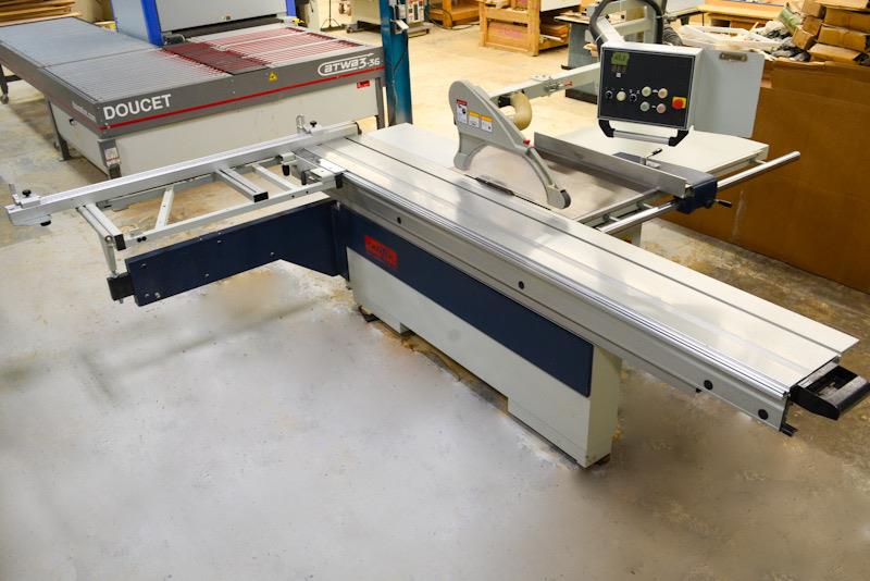 15-1/2” x 126” x 35-1/4” H Precision anodized aluminum sliding table with Prismatic rollers running on precsion ground steel guides, 21.6” x 35” x 35.3” H Cast-iron fixed table, 12.6” x 32.7” x 35.3” H Auxiliary table.