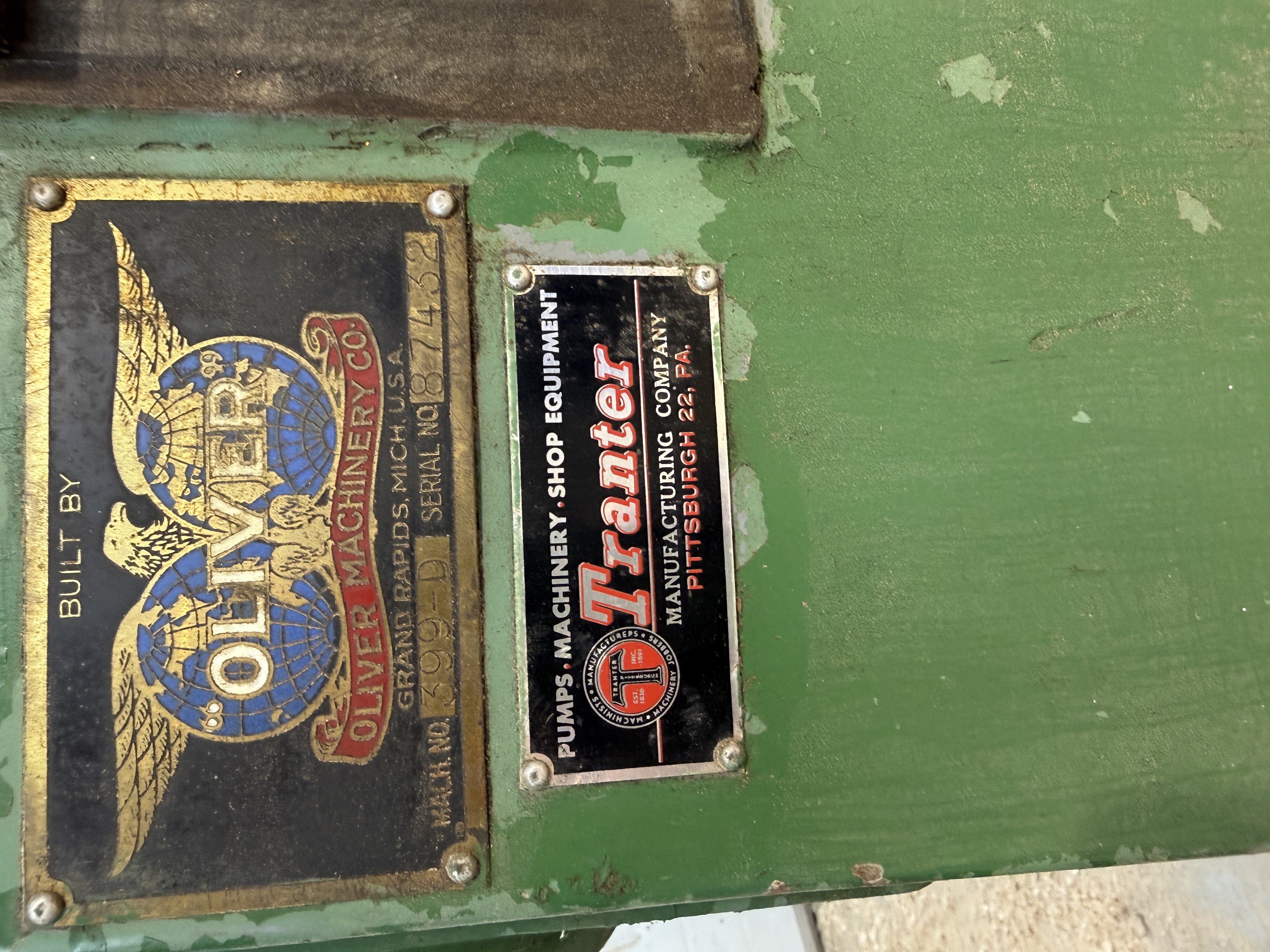 Used Oliver 399D planer in excellent working condition. 18" x 24" working surface. New bearings, new knives, and new motor starter were installed in Summer 2023 by RT Machinery, Hughesville, PA. Originally from a school; I am at least its third owner. It is a great machine that I have used for more than a decade but I now have upgraded to a larger planer.