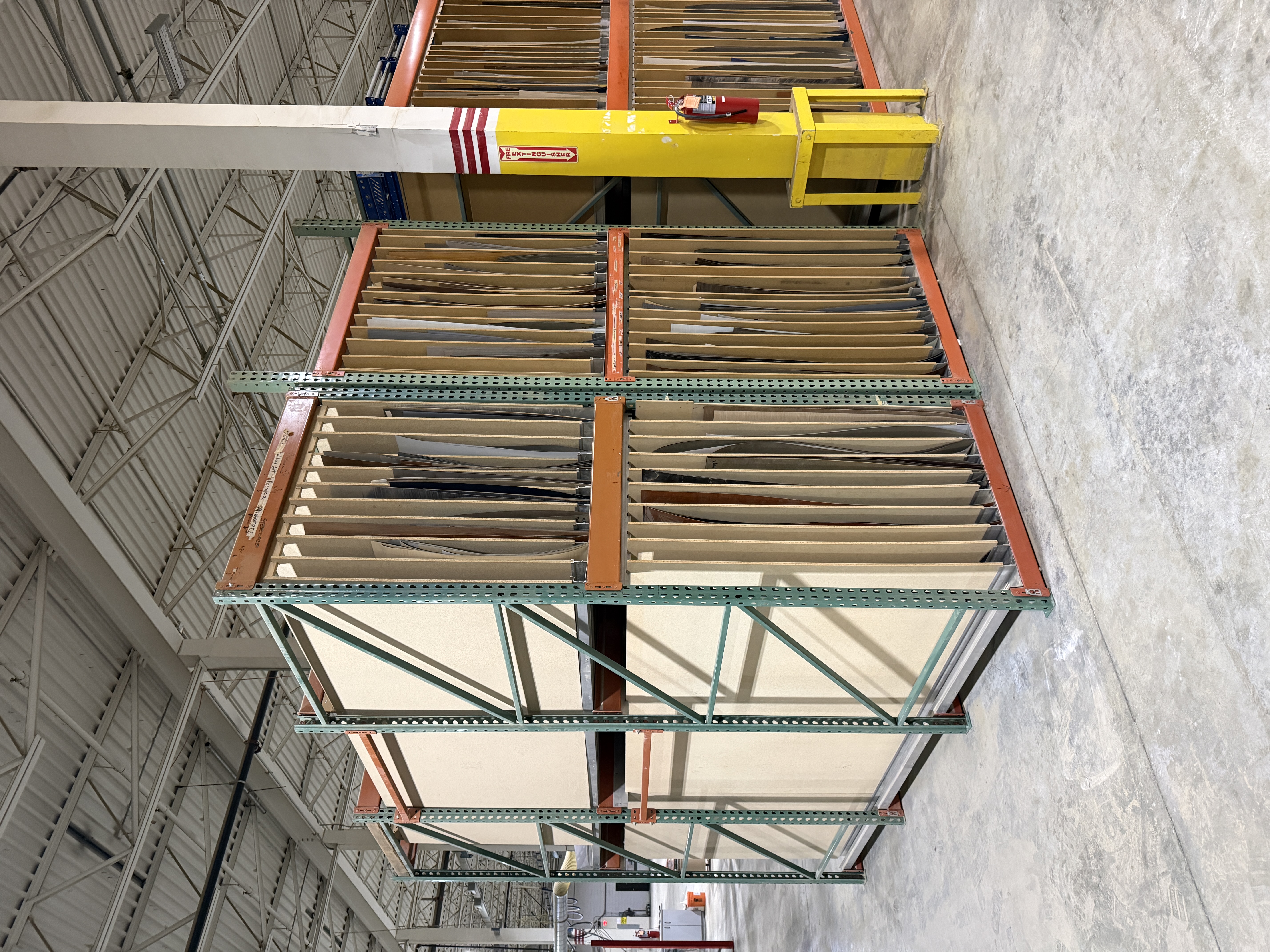 Vertical laminate rack; 48" Wide; holds 5 x 12's on bottom, 4 x 12's on top; 11 openings; includes 1/2" wood dividers.