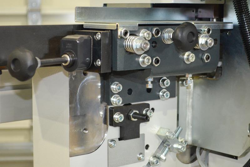 Corner Rounding Unit, with 0.22 kW (1/3 HP) - 12,000 RPM - 200 Hz Motor, 50 mm (1.97”) Diamond cutterheads, 50 mm (1.97”) Vertical/Horizontal copiers for profiling straight, curved, & beveled edges, & PLC-selectable front, rear, or complete panel processing.