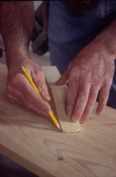Making a thin deep scribe line goes a long way towards preventing tear out when you start making the cuts. I darkened the scribes lines using a pencil to make them more visible in the photos.
