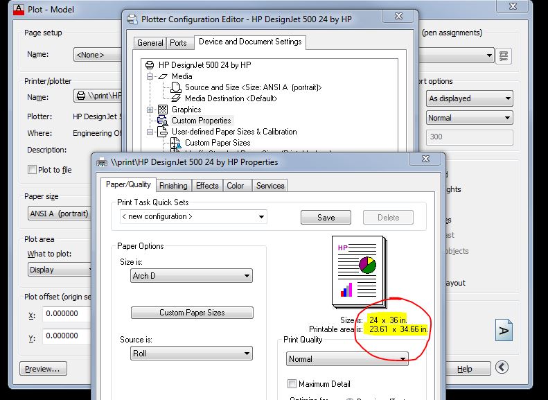 It shows me a 22 x 34 custom template, which is my plot area, but I cannot get the template to work and plot correctly with the one inch boarder.
