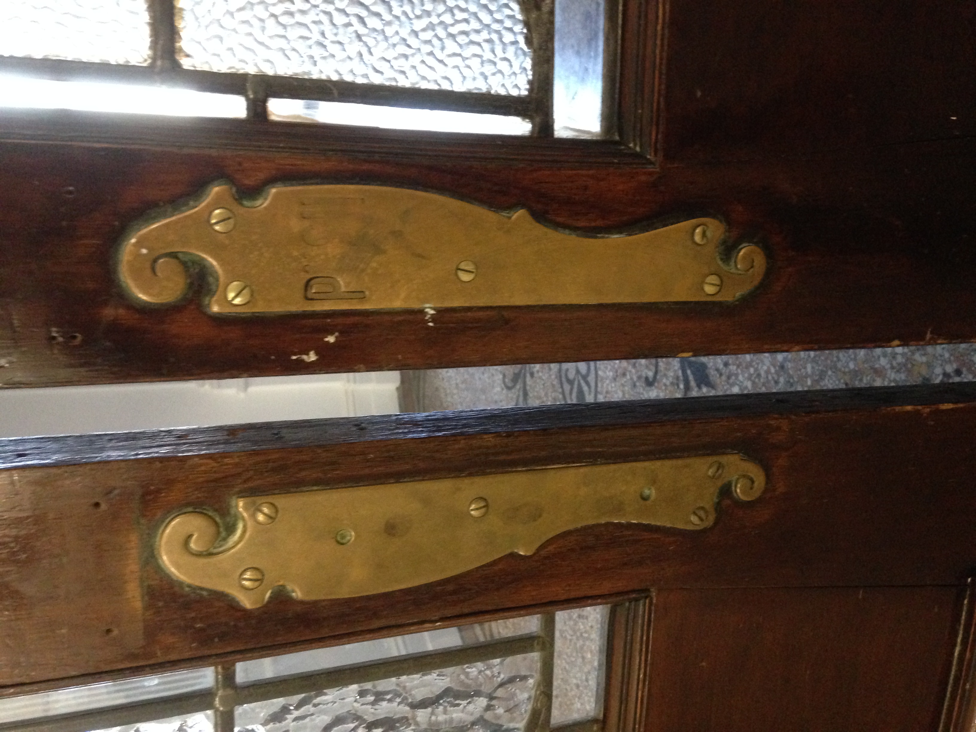 If the new wood has to match the old, I'd pull one of those push plates off to get a good look at what it is.....I can't tell anything from the pics.