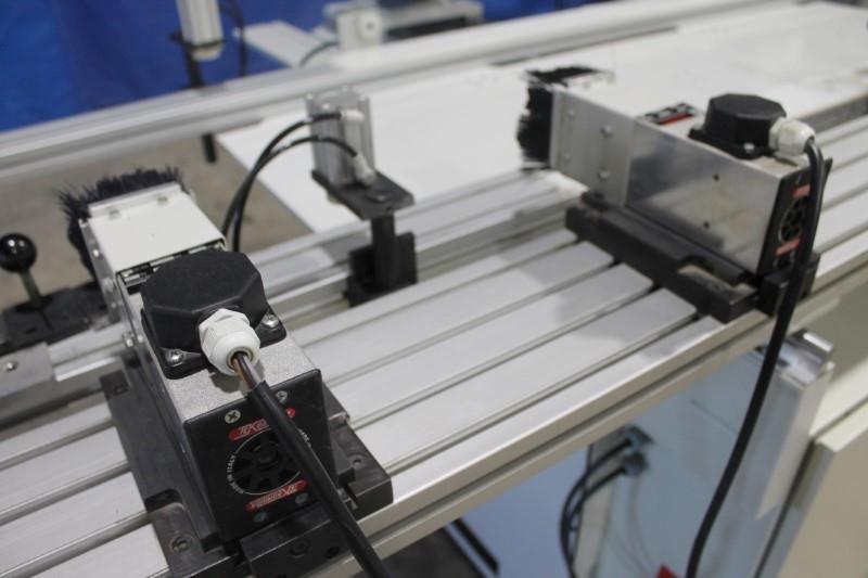 Work Table: (2) NC Controlled extruded aluminum support rails with (6) Non-Marking manually positioned pneumatic panel clamps.