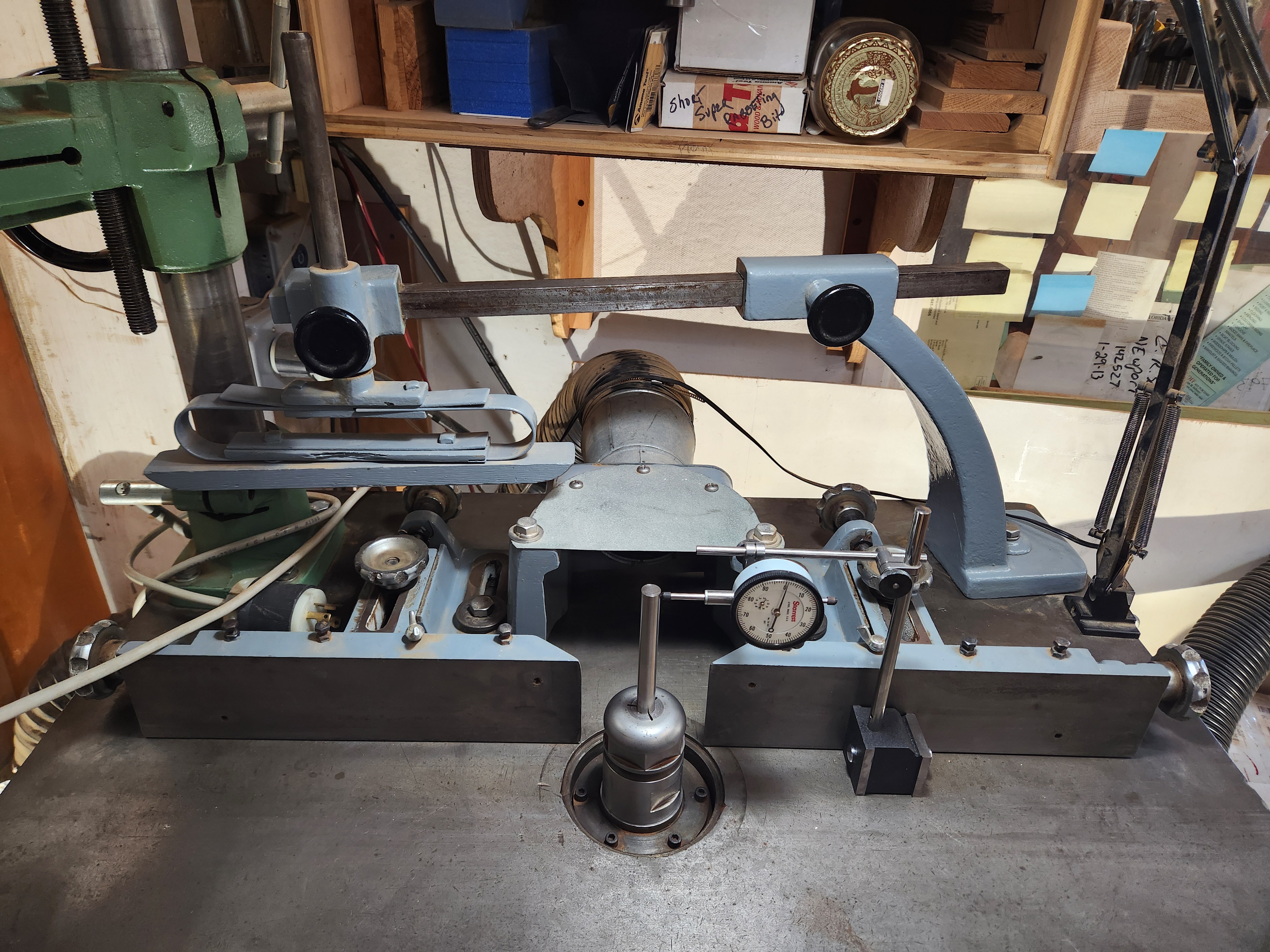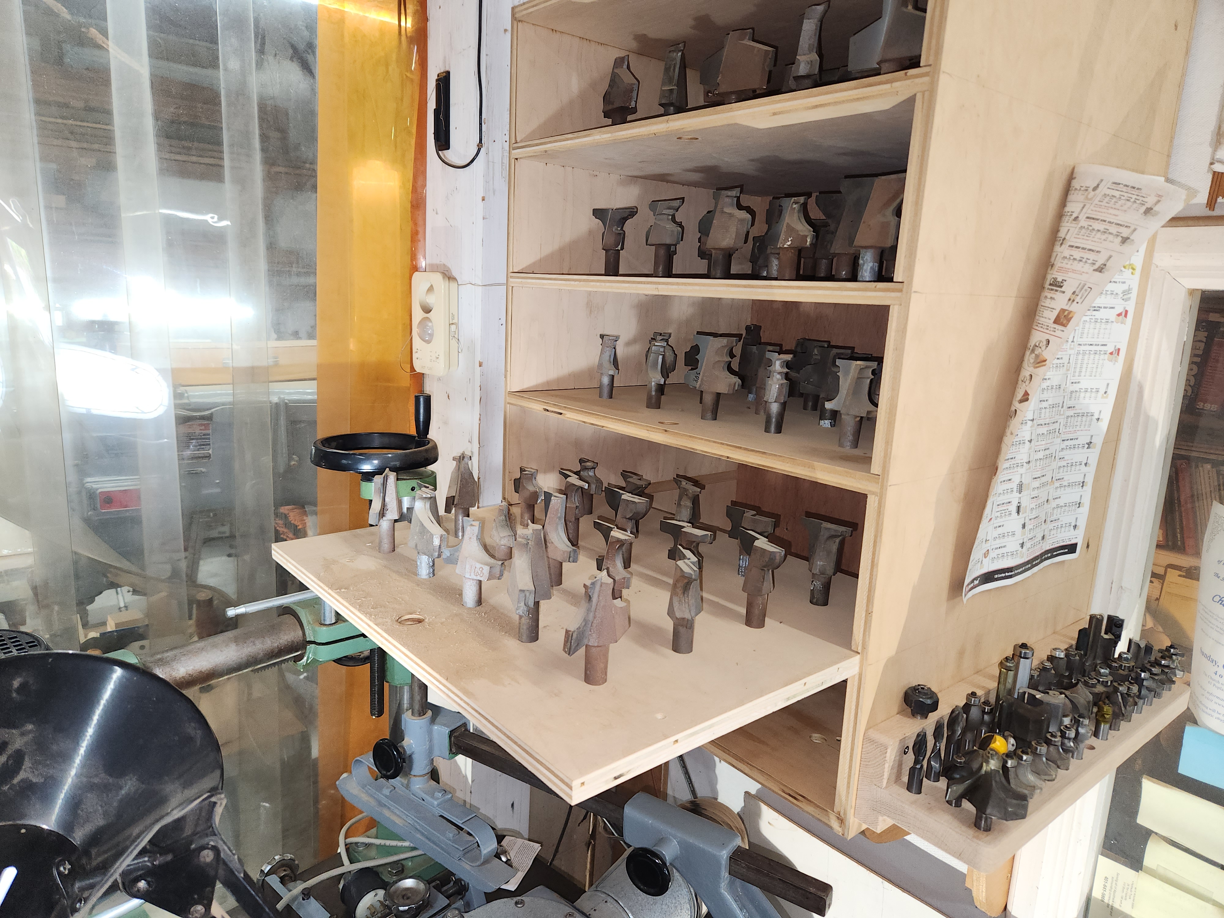 Onsrud W-200 Router/Shaper, 5hp?, 230volt, 3 Phase. Reconditioned and in Excellent shape and comes with a Like/New Steff-Maggi Stock Feeder. Operated in a one man shop who is now retiring. The Router/Shaper is currently set up as a router, but comes with a 1" arbor for shaper heads. The Collet Chuck has been indicated within .001". Router/Shaper comes with 1/4", 1/2", and 3/4" Collets. Comes with at least (100) 3/4" shank router bits and cabinet with slide out shelves. The profiles of the cutters seem to be mostly Victorian style. The Router/Shaper also comes with two boxes of router bits. Also comes with another heavy duty Fence, that I never got around to mounting. The rack of router bits that is on the side of the cabinet does not come with Router/Shaper. Comes with Machine Light. Asking $2900.00. I have a fork lift for loading. 401-824-6585