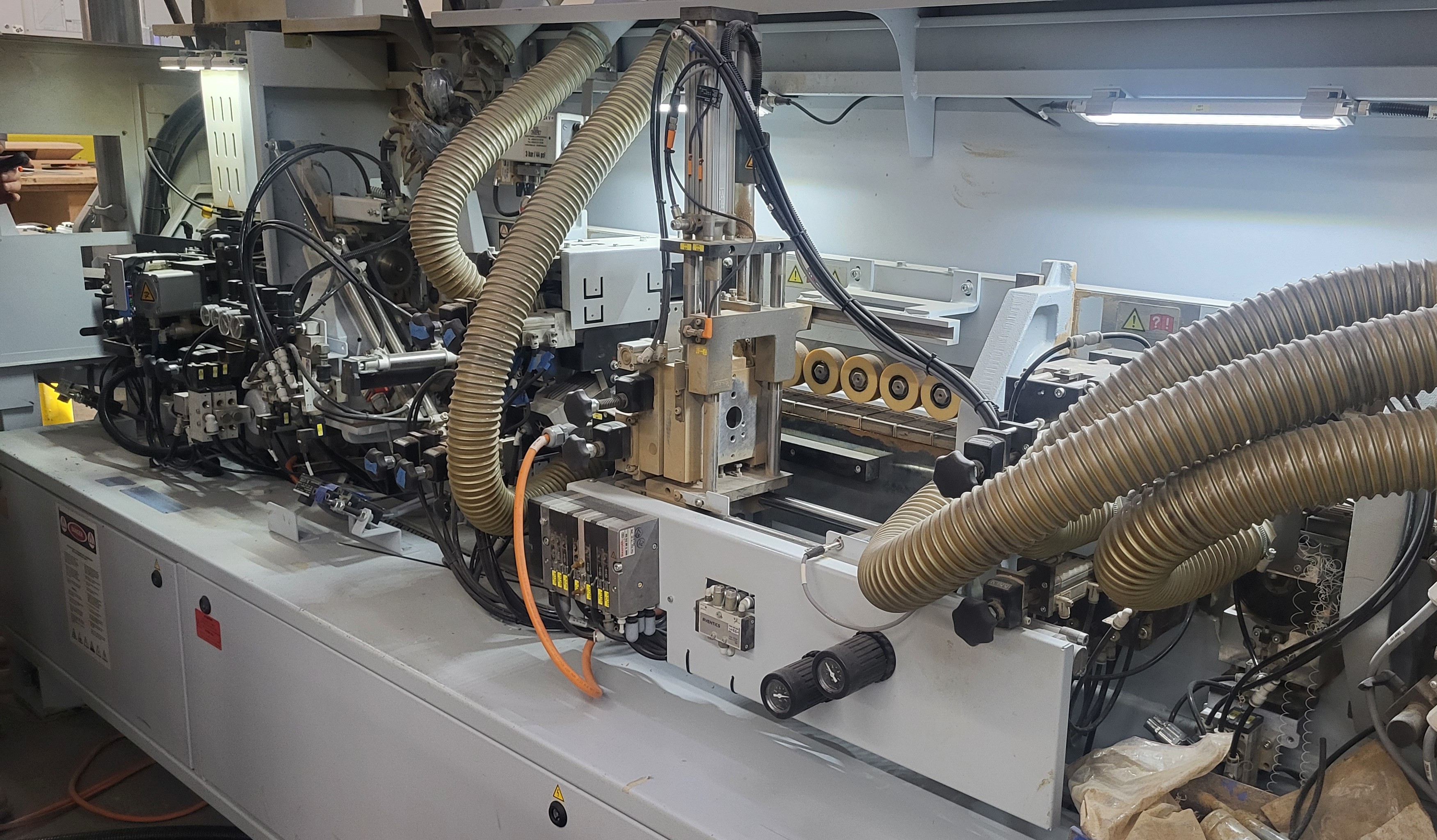 Glue system: EVA hotmelt glue pot. ALSO EQUIPPED WITH AIR TEC for use with pre-glued edgebanding