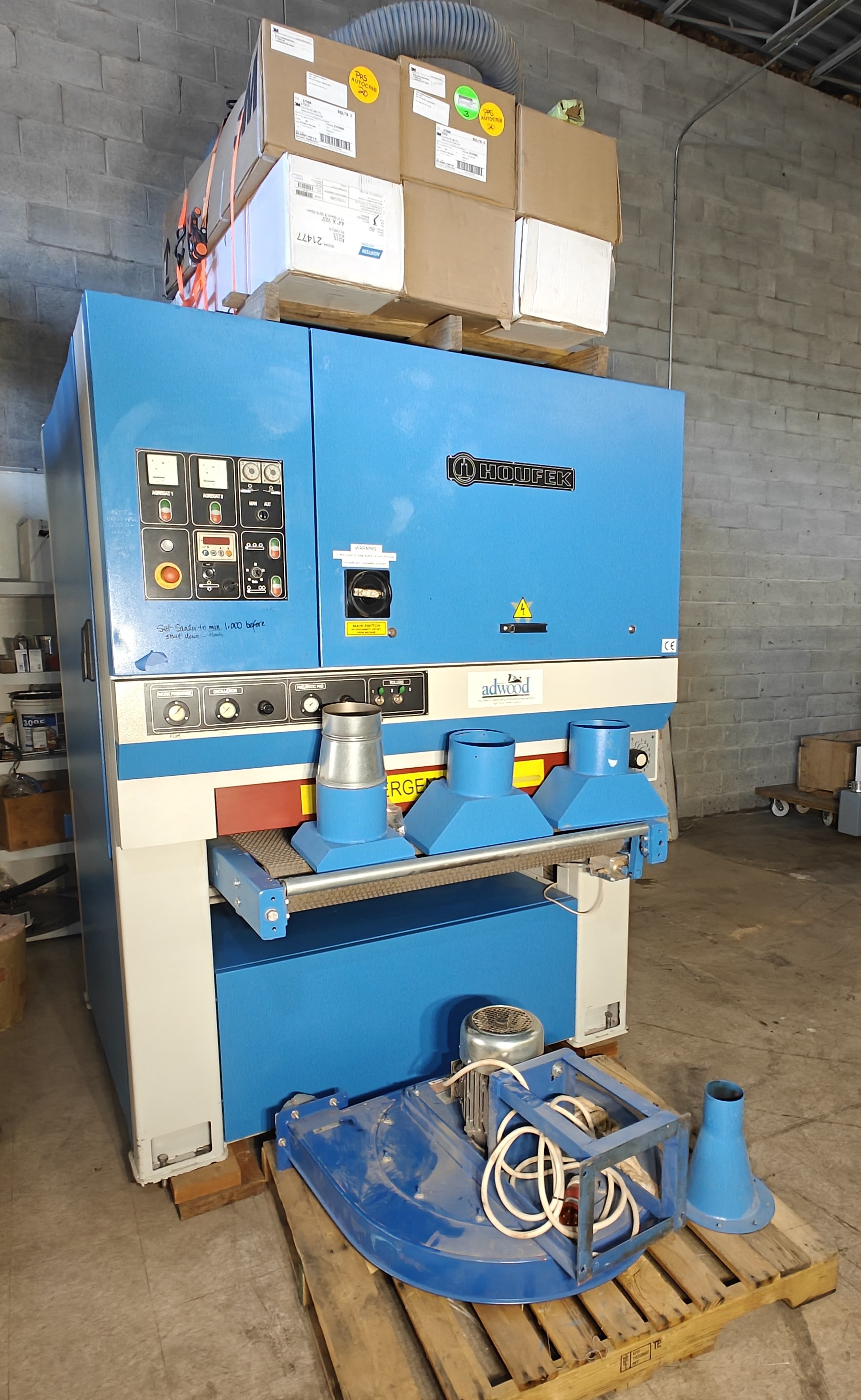 Comes with spare sanding belts (see boxes on the top of the machine)