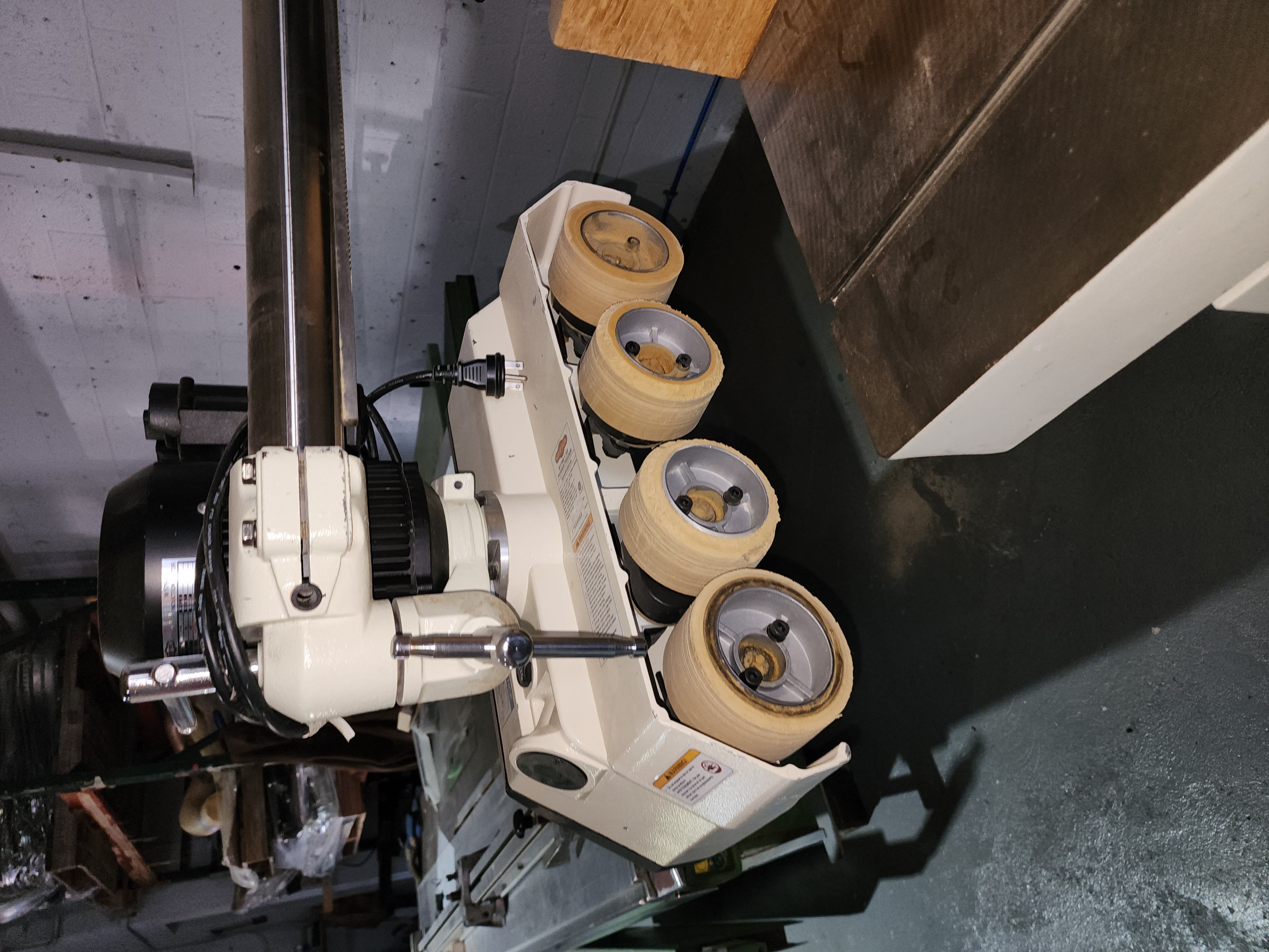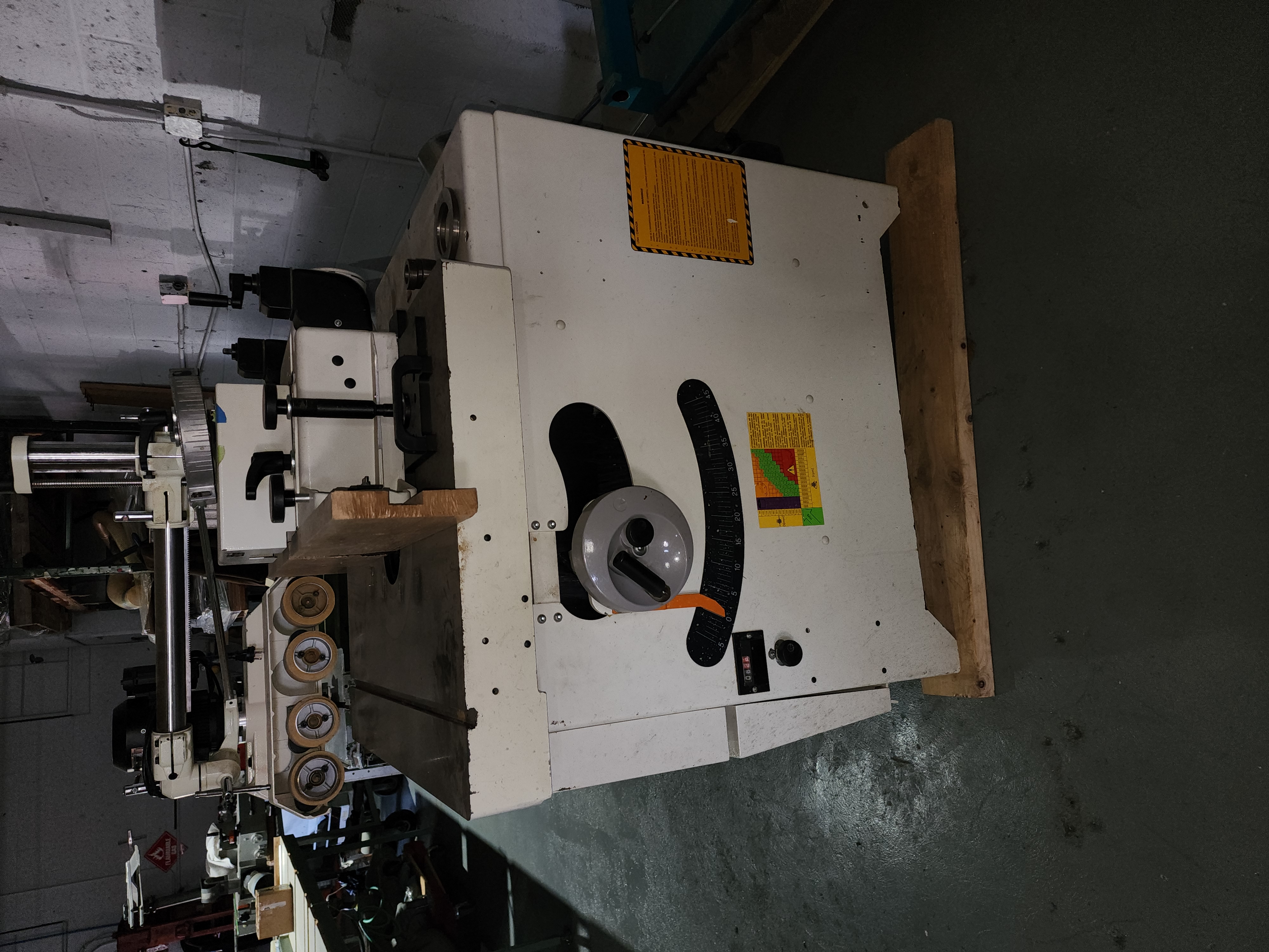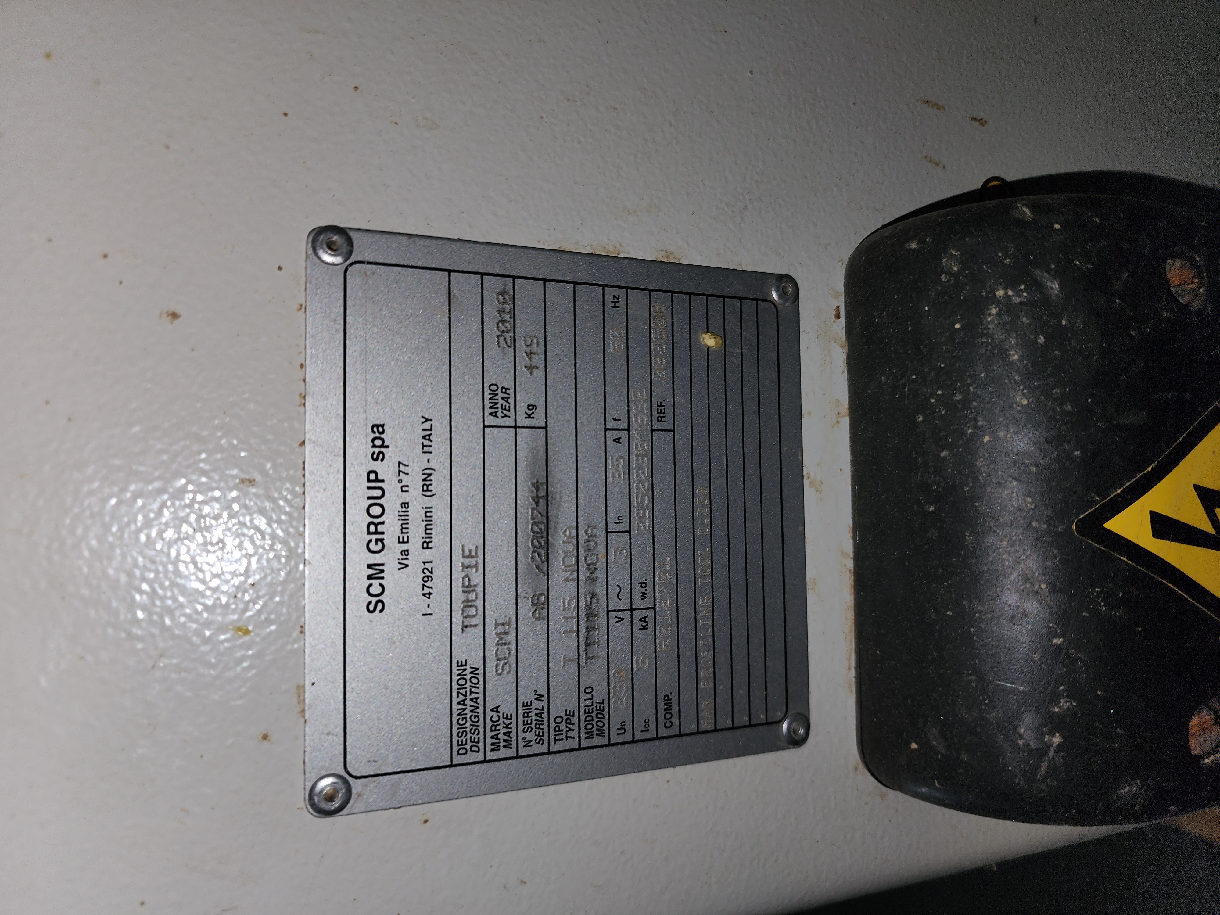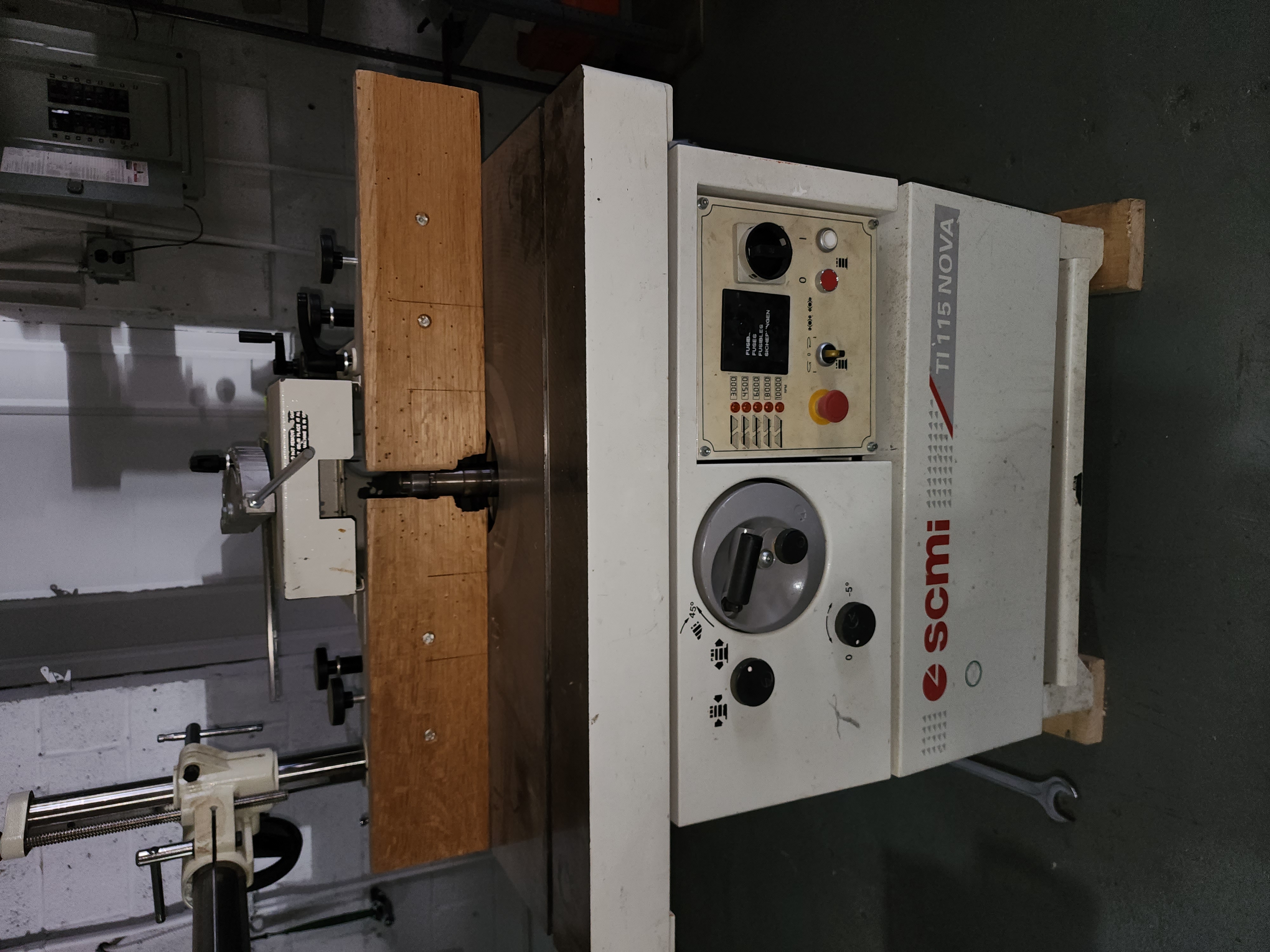 Used Scm model TI 115 Nova Tilting Spindle Shaper, 9 HP, 230 V, 3 Phase with 4 roll power feeder. Unit runs well , needs a new gear box to raise/lower spindle and foot brake cable.