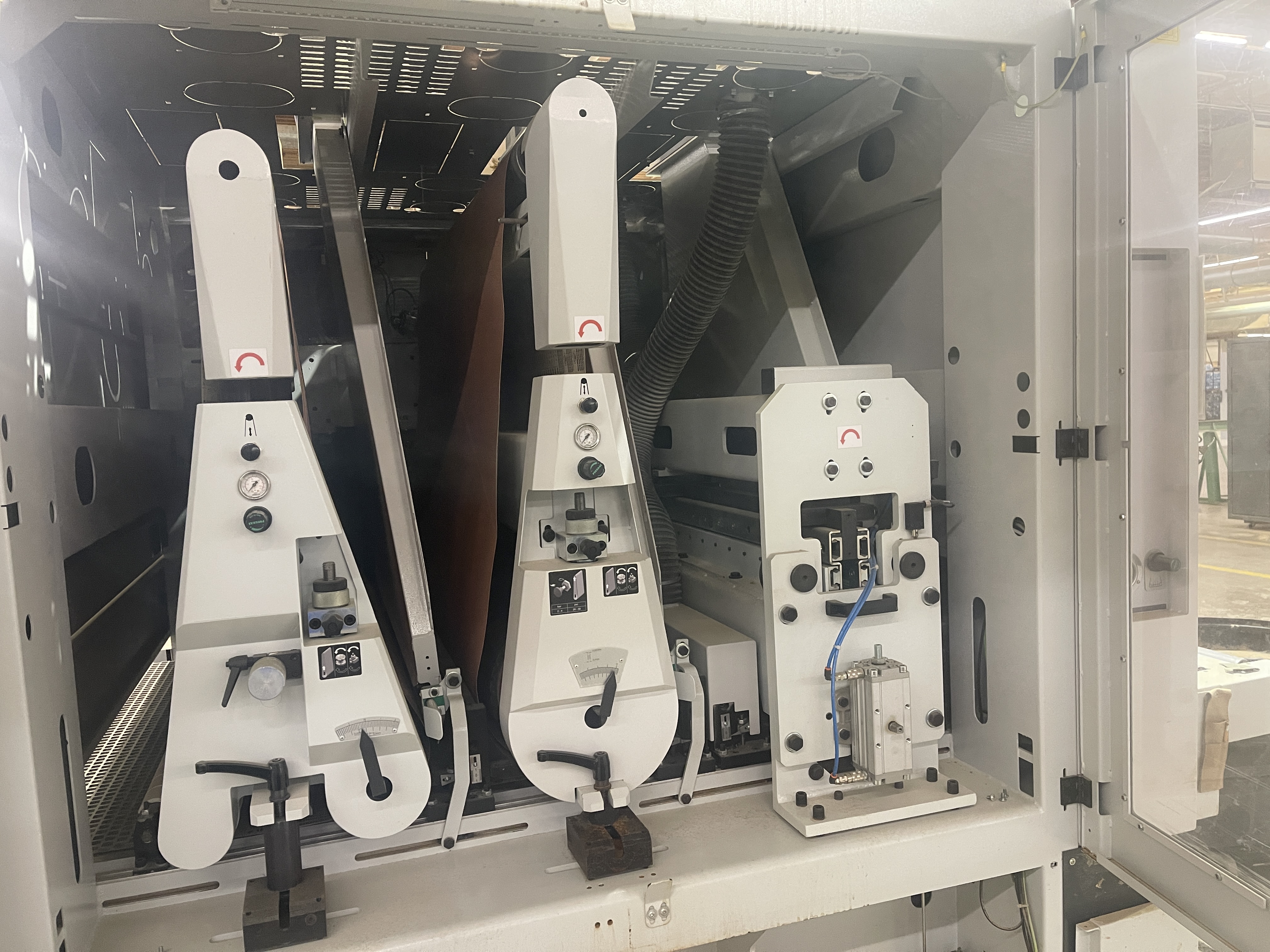 Third Head is a combination head with 6.4" diameter 60 shore rubber drum and Pneumatic sanding pad with 15HP motor