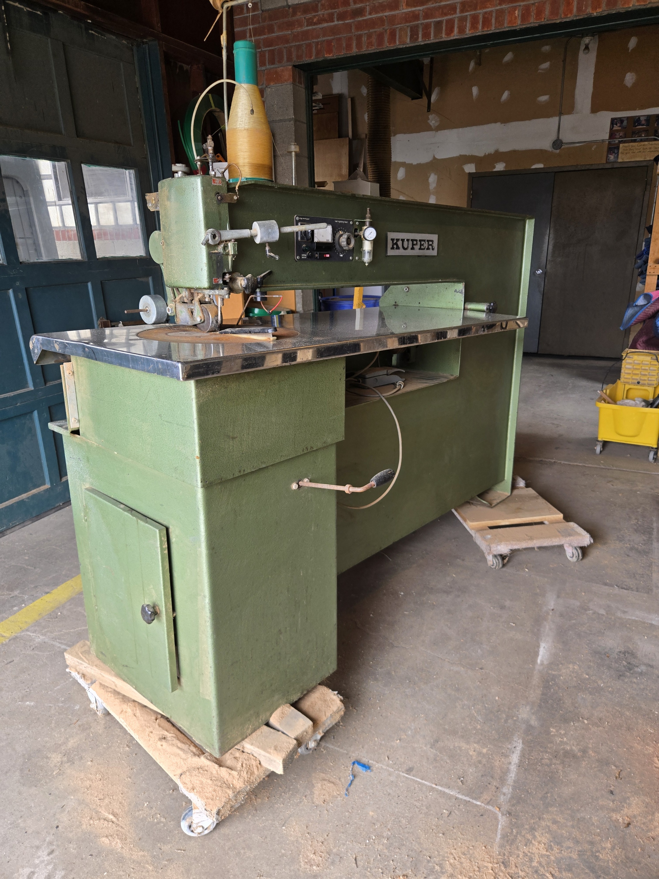 Kuper veneer stitcher. Recently taken out of service and not under power. Good supply of additional stitching thread included. Fork lift and manpower available at our location to help load.