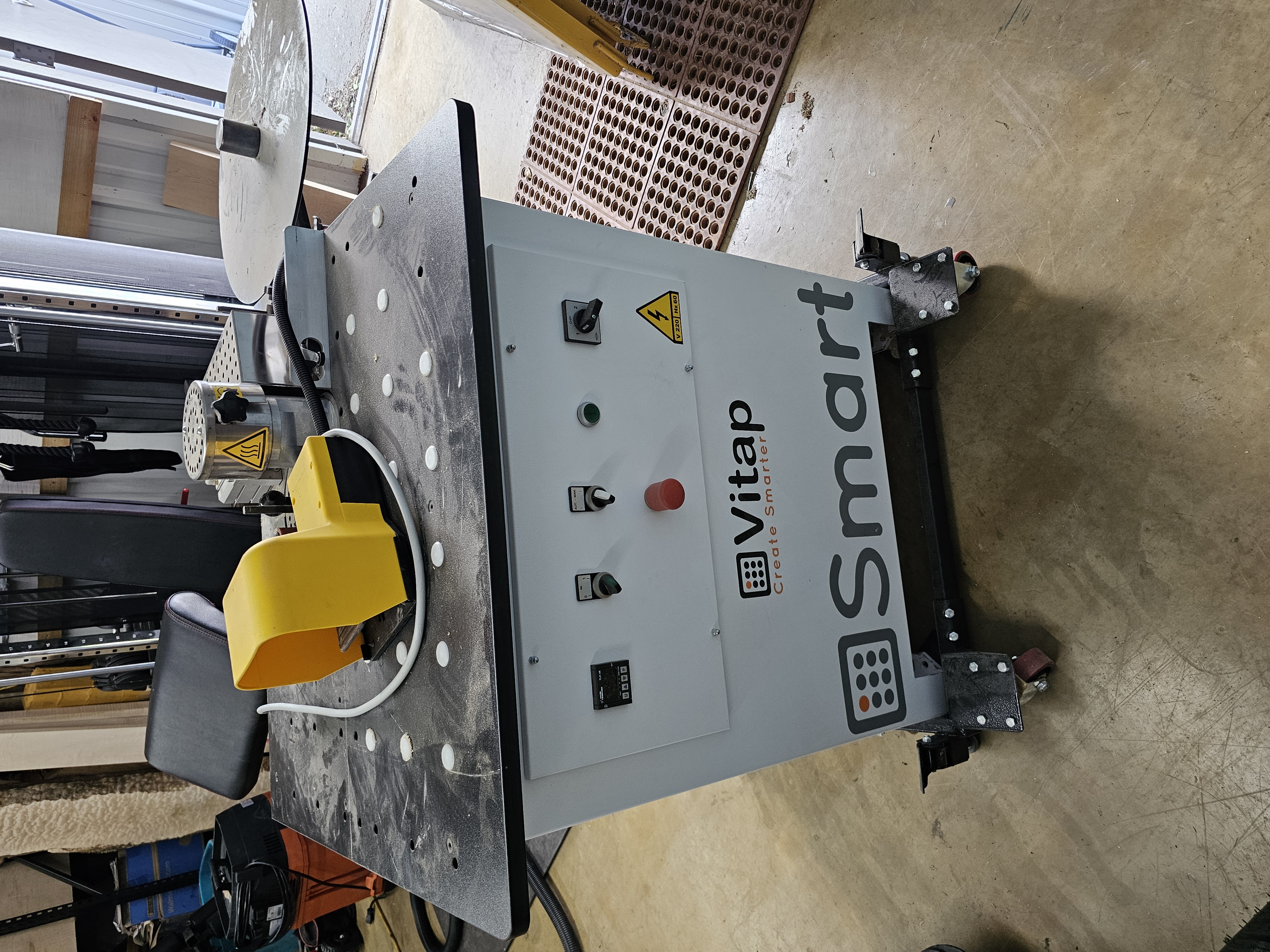 Vitap Smart contour edgebander. Bought to use on 1 job. Made a subtop that angled so I could do beveled edge doors. Worked great for that. In like new condition Machine has less than 4 hours on it. Fast heat glue pot Applies banding only. Has automatic feed and guillotine 230v 3 phase On mobile base. Moving my shop and won't have the space or need for it. Will pallet for free. Crating for material costs. Forklift on site to load.