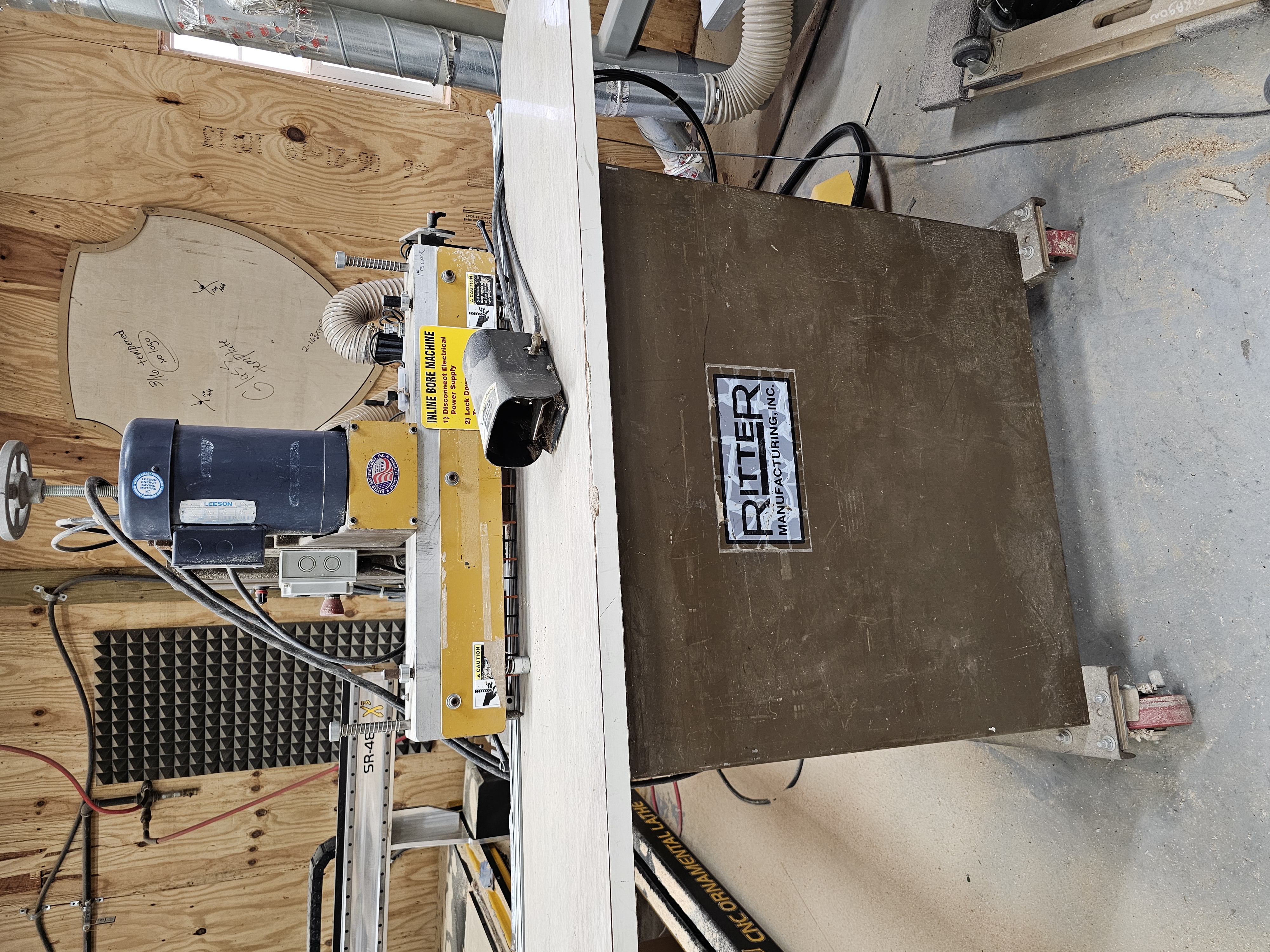 Ritter single row 23 mm line boring machine. In great working condition, cosmeically shows its age. Brand new 5mm drills, have the old set of 1/4 inch also. On casters Foot actuated drill bank. 230v 3 phase. Moving shop and no room for it. Can load for free. Too big to crate.
