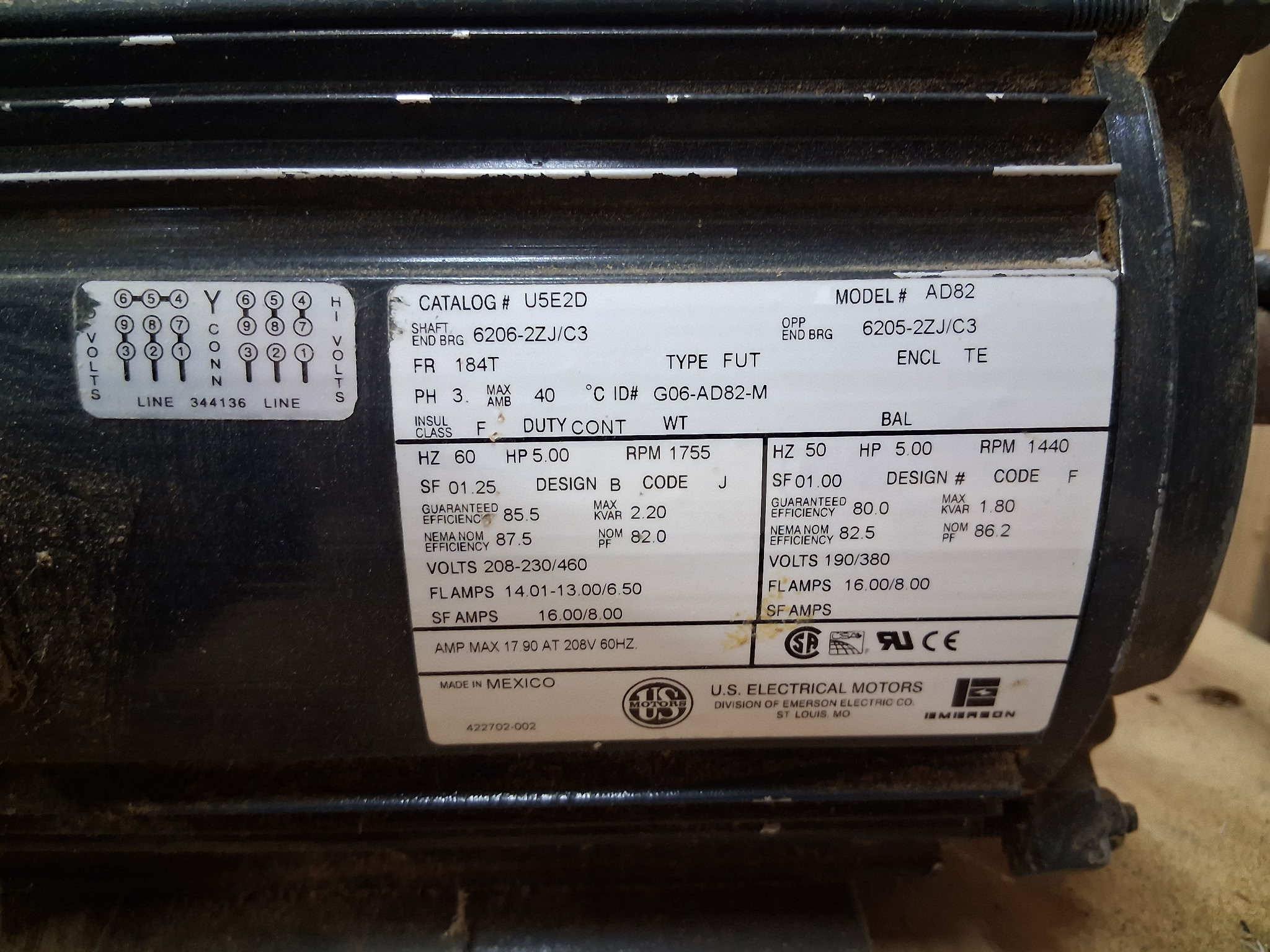 5HP 230/460, 3 PHASE 184T FRAME 1755RPM