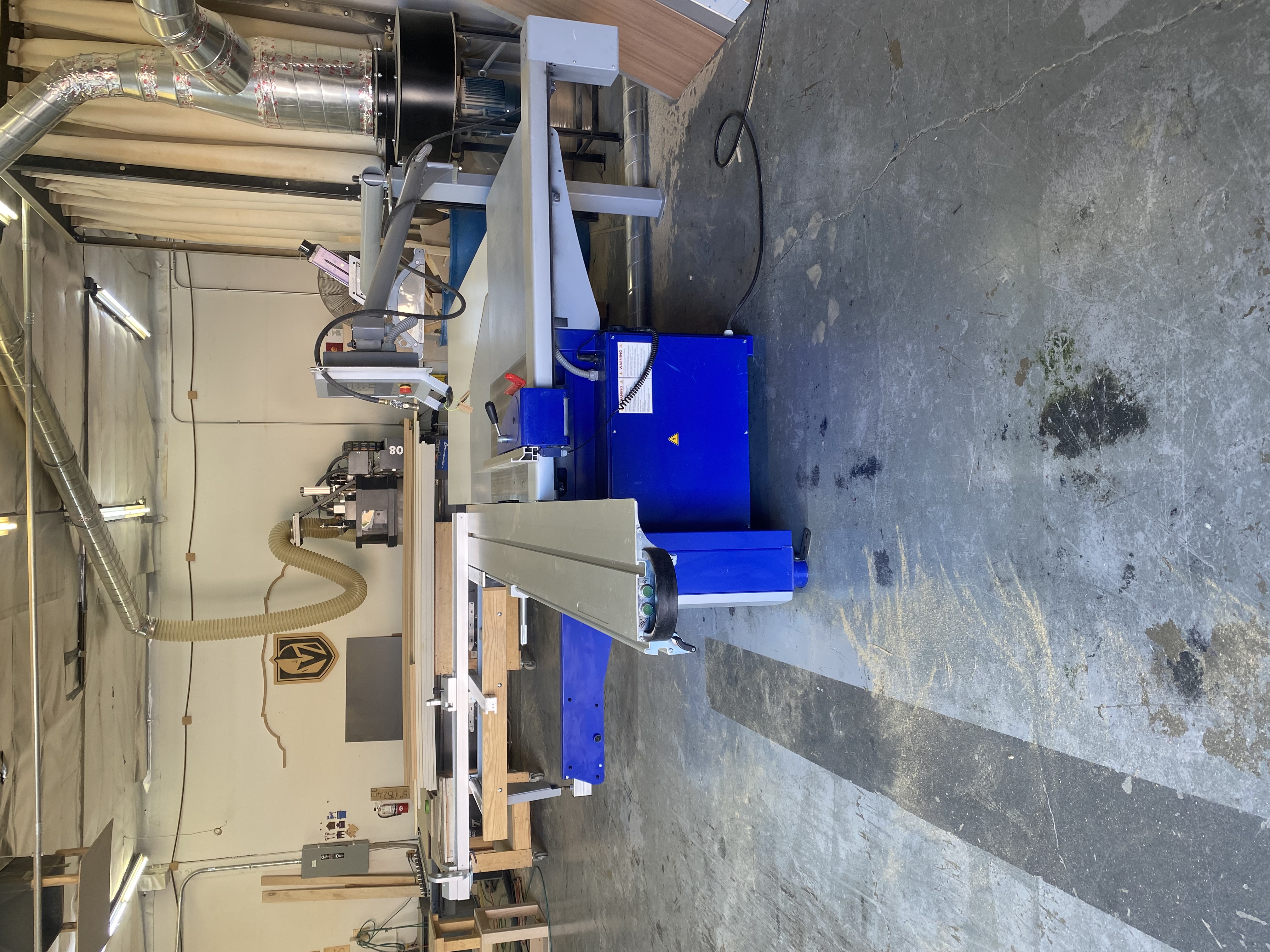 Felder Format-4 Kappa 400 x-motion (2016) Premium European sliding table saw with full electronic height, tilt, and rip-fence control via touchscreen. 3200 mm X-Roll sliding table, 7.5 HP main motor, 1.5 HP scoring, 1250 mm rip capacity, 045° tilt, imperial scales, and crosscut fence with stops. Includes 2-axis scoring unit, Easy-Lock blade system, outrigger table, overhead guard, dado flange, and integrated remote switches. Excellent condition low hours, smooth travel, clean and fully operational. Professionally packed and skidded for pick-up or shipping. Delivery quote available upon request.