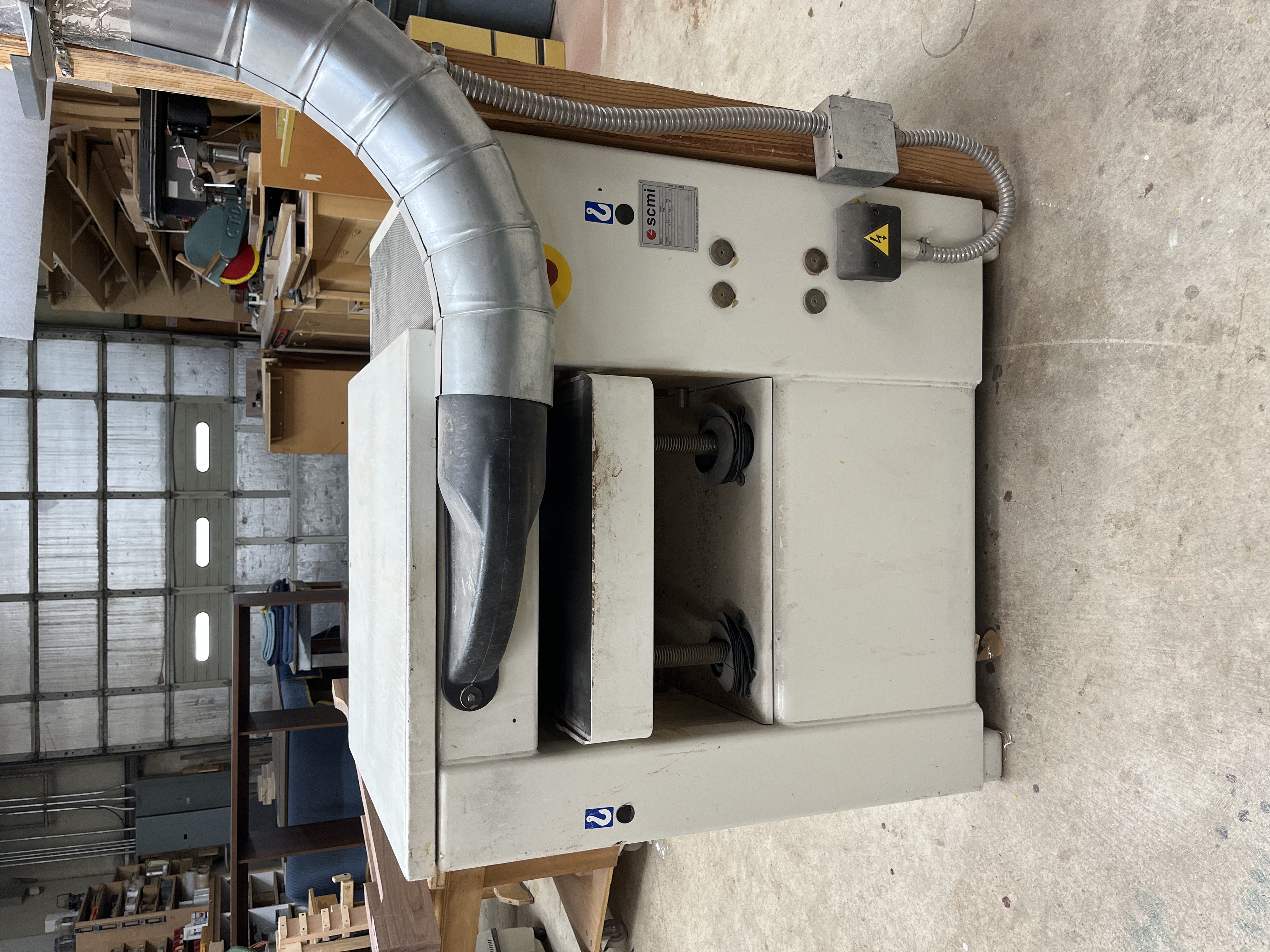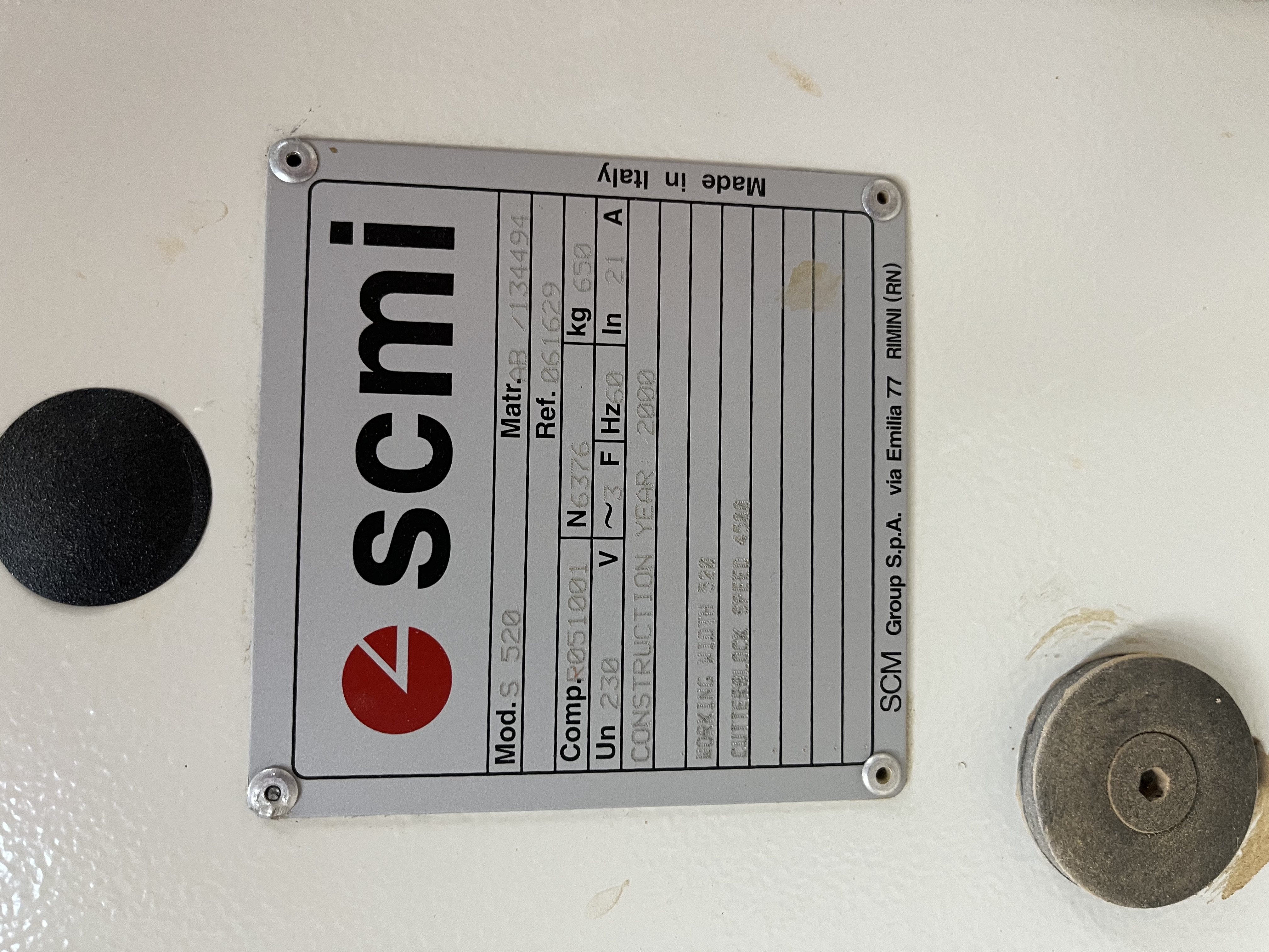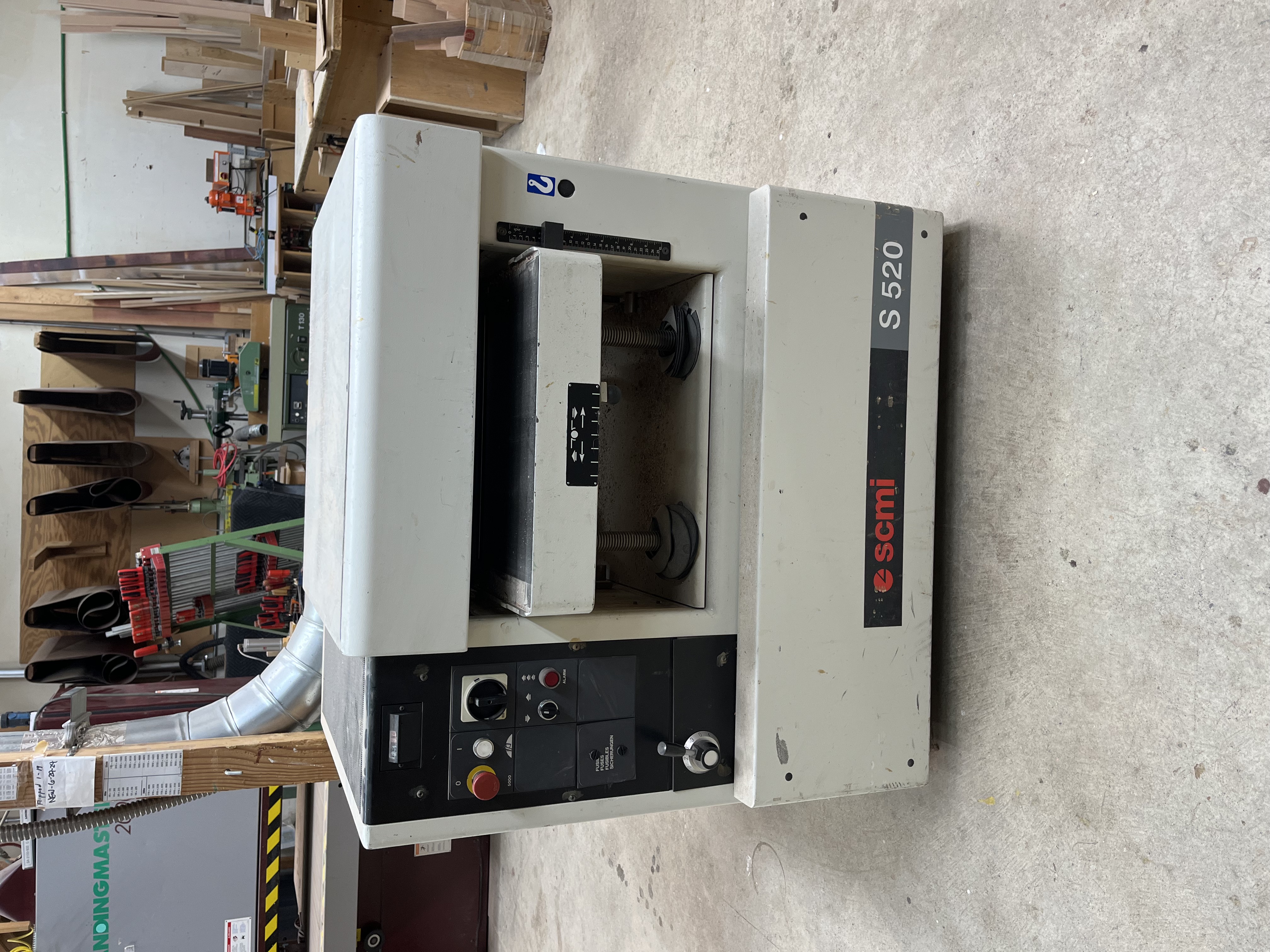 SCMI S520 Planer w/Tersa - quick change knife cutter head. SCMI Planers are highly sought after and known for their quality and available parts. Specifications: Working width: 520 mm Planing height min.: 3 mm planing height max.: 250 mm Power: 10hp 3phase Type of knives: Straight blades Number of knives: 4 Feed speeds: 6/10/14/20 m/min Cutter speed: 4.500 rpm Height adjustment: electric w/digital readout Motor brake: yes Weight: approx. 680 kg (1500 lb)