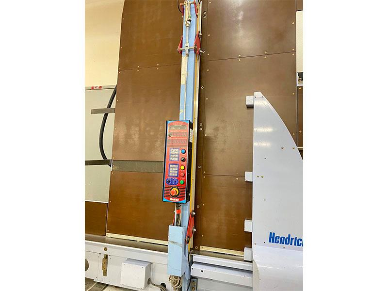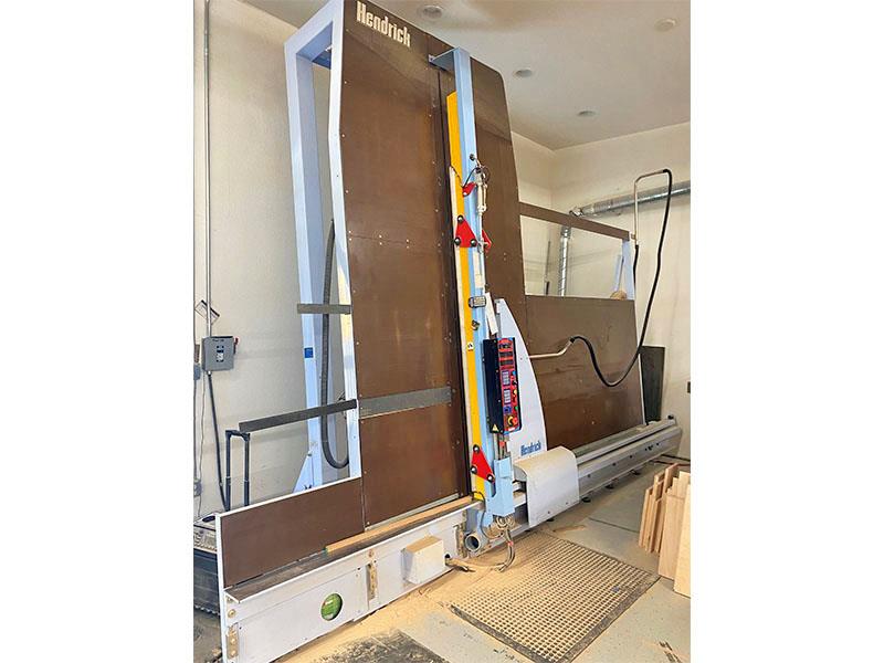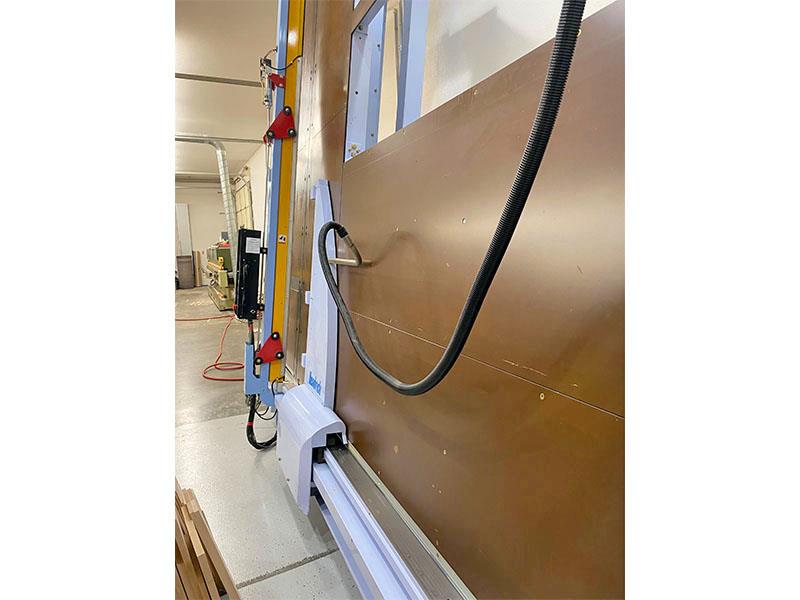 96" Cutting length (cuts vertically top to bottom); adjustable depth of cut up to 2-3/8"; 14" blade dia. with: 1" Dia. bore; single blade scoring; 7.5 HP main motor. Programmable pusher fence; formica laminated back table surface; full length pneumatic holddown bar with: Sensitive safety tape on both sides of holddown; 1 HP drive; 2-speed automatic saw carriage; travels 30 & 60 FPM (saw travel/return adj. to cut length).