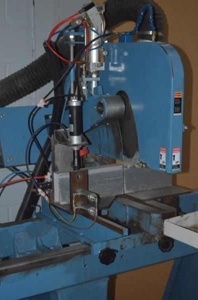 Left-Hand fixed & Right-Hand movable heads, with 90° & 45° Positive stops, Compound cut to 45° on each side of vertical plane & 15° on other side with graduated degree quadrants for angle settings.