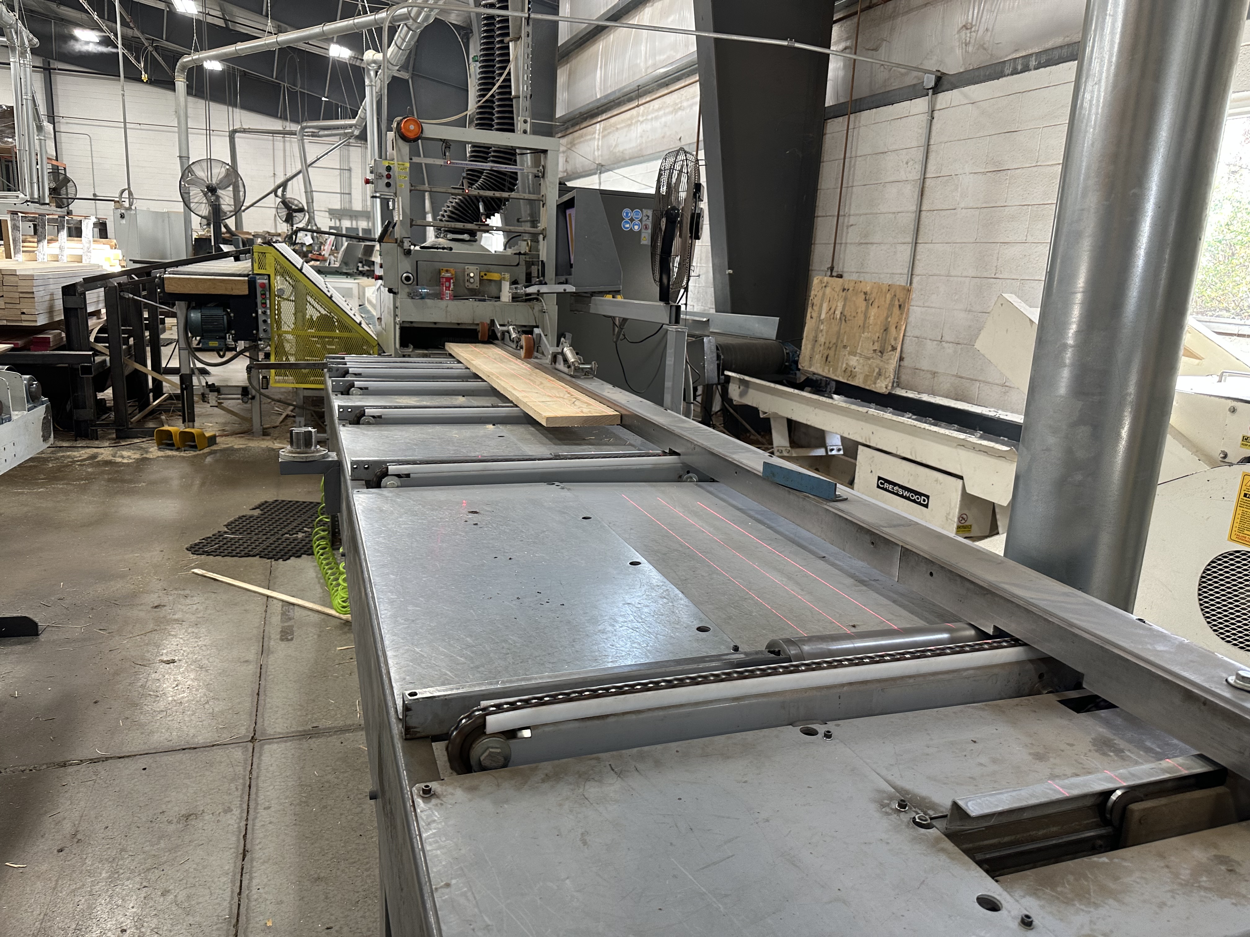 Cameron Automation Model # MRS-340M2 Gang Rip Saw w/ Model #411A-16I-12S-16L-220 Skew Infeed Fence The Skew Rip Optimizing System with Skewable Fence.