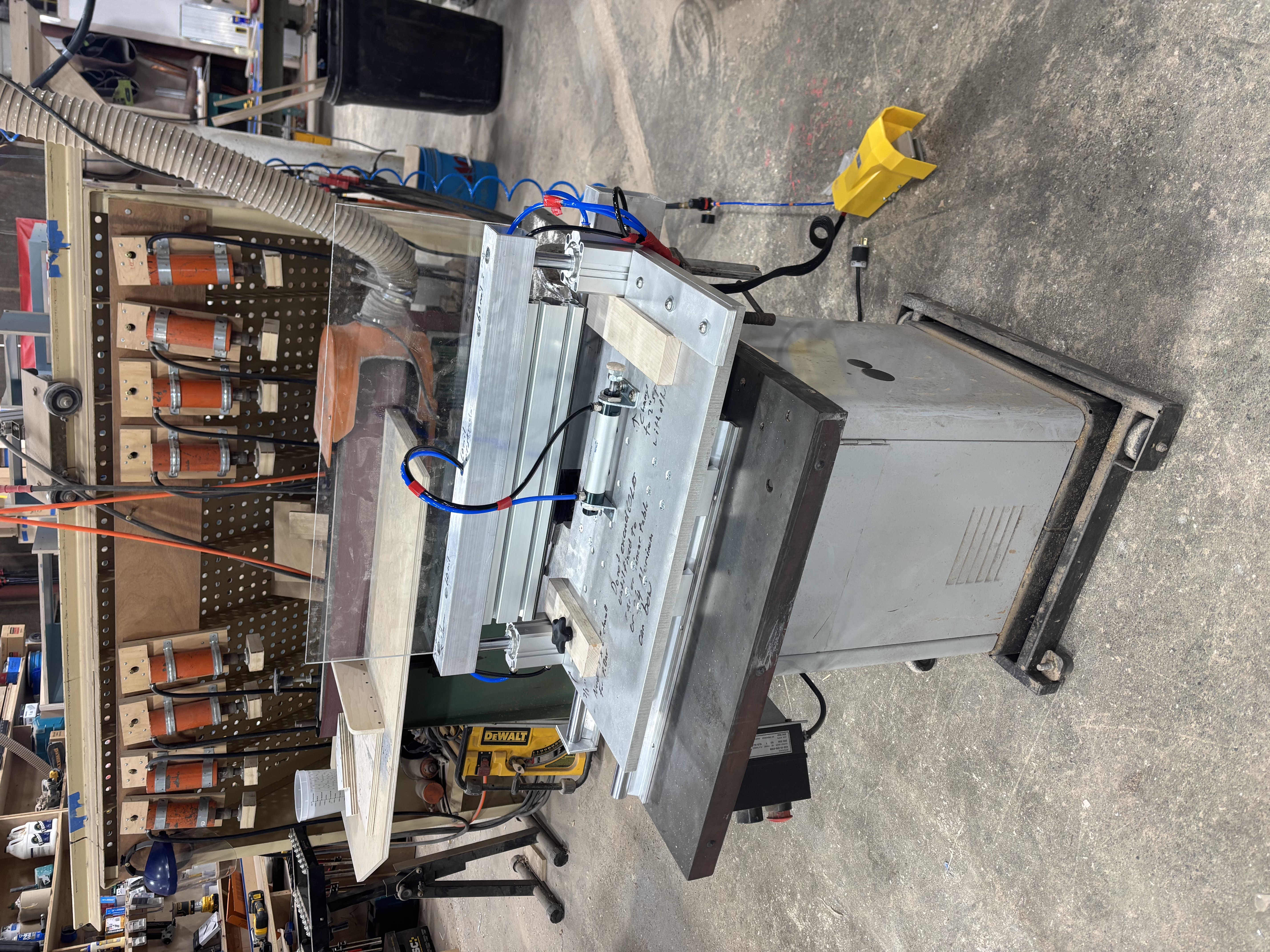 This sled is perfect for the shop that does everything. You can cope 5 or more cabinet door rails safely and accurately at a time saving an amazing amount of time or do giant exterior bottom door rails of over 17'' knowing that the parts will come out perfect every time. Vertical clamps have well over 500lbs of clamping force on the combined double pressure bar. Pressure is easily adjusted for harder or softer woods via pressure control switch located at the operators finger tips. If you already have a sliding table shaper purchase the table only or purchase the entire setup for standard machines. If your existing table does not slide perfectly true then I would suggest purchasing the entire unit to get the benefits of the new linear rails.