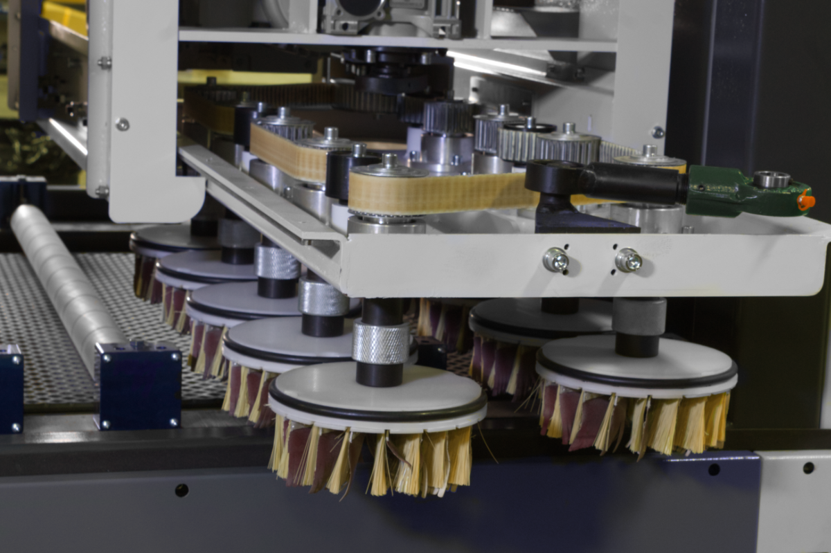The SB Series features heavy duty construction, a small footprint, and the machines can be fitted with a wide range of abrasives and heads. Replacing the abrasives is as easy as sliding out the station and inserting into the quick-change hub. One machine can be used for whitewood sanding, sealer sanding, and denibbing.