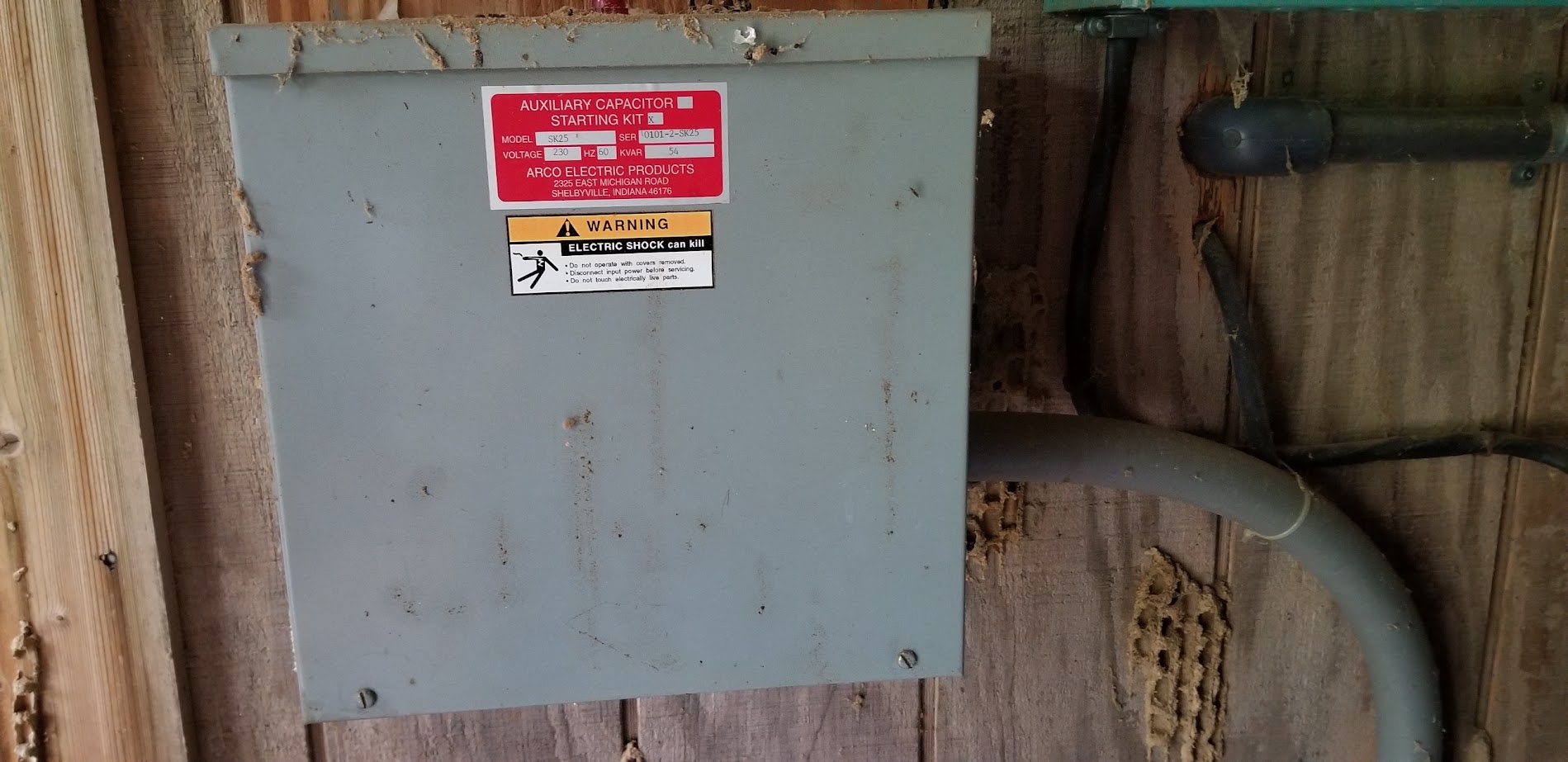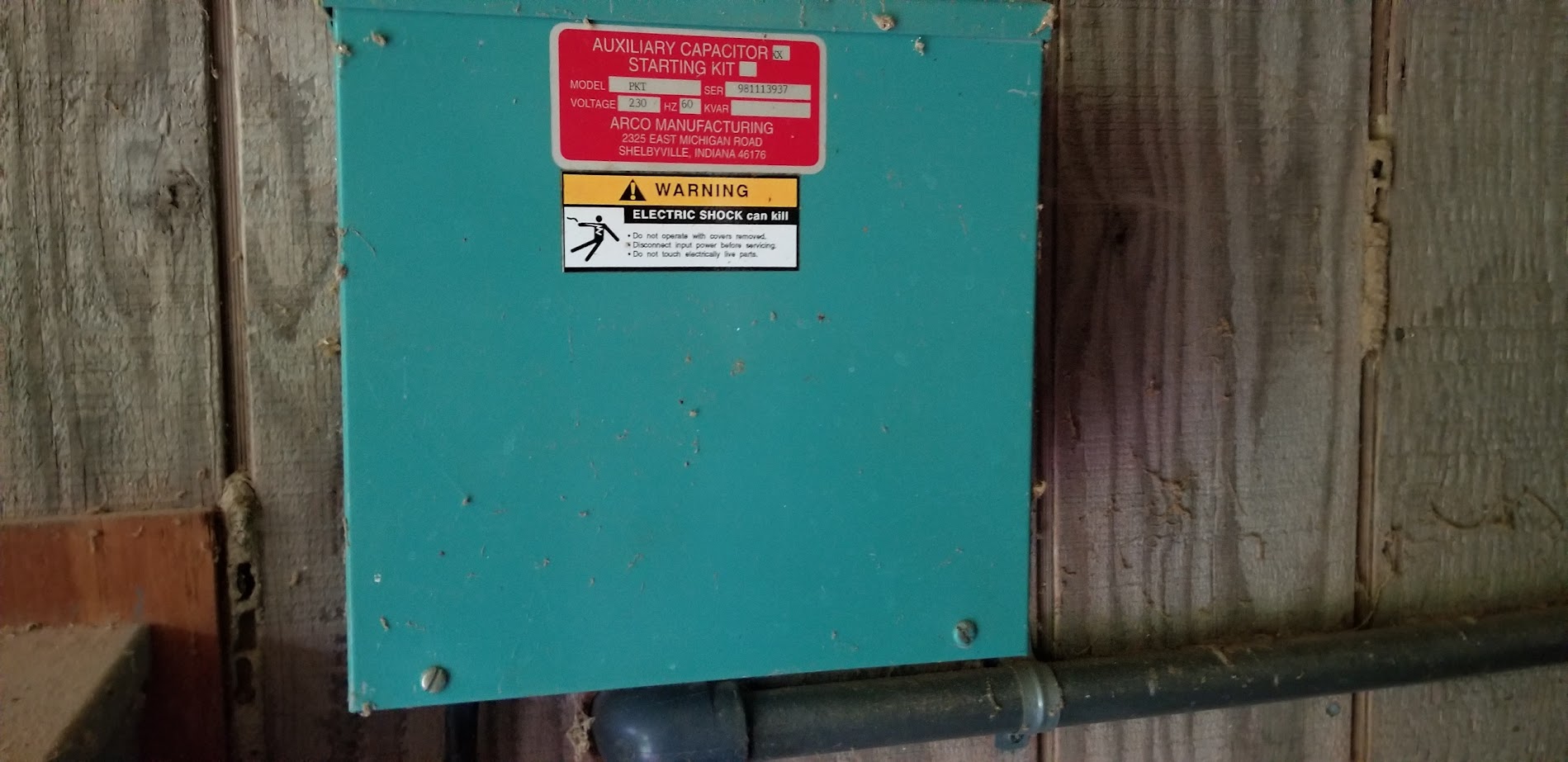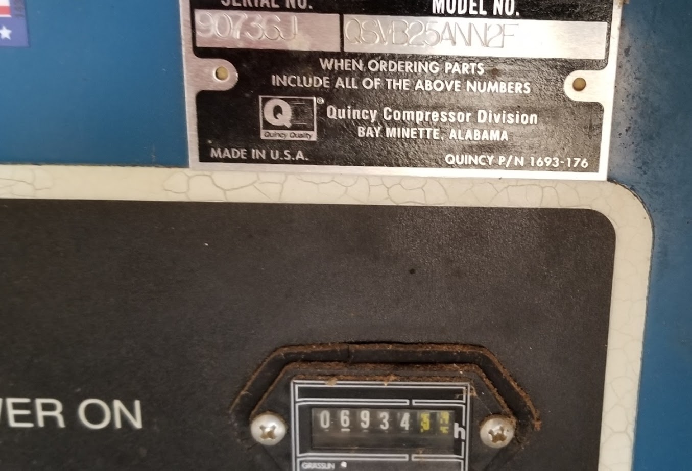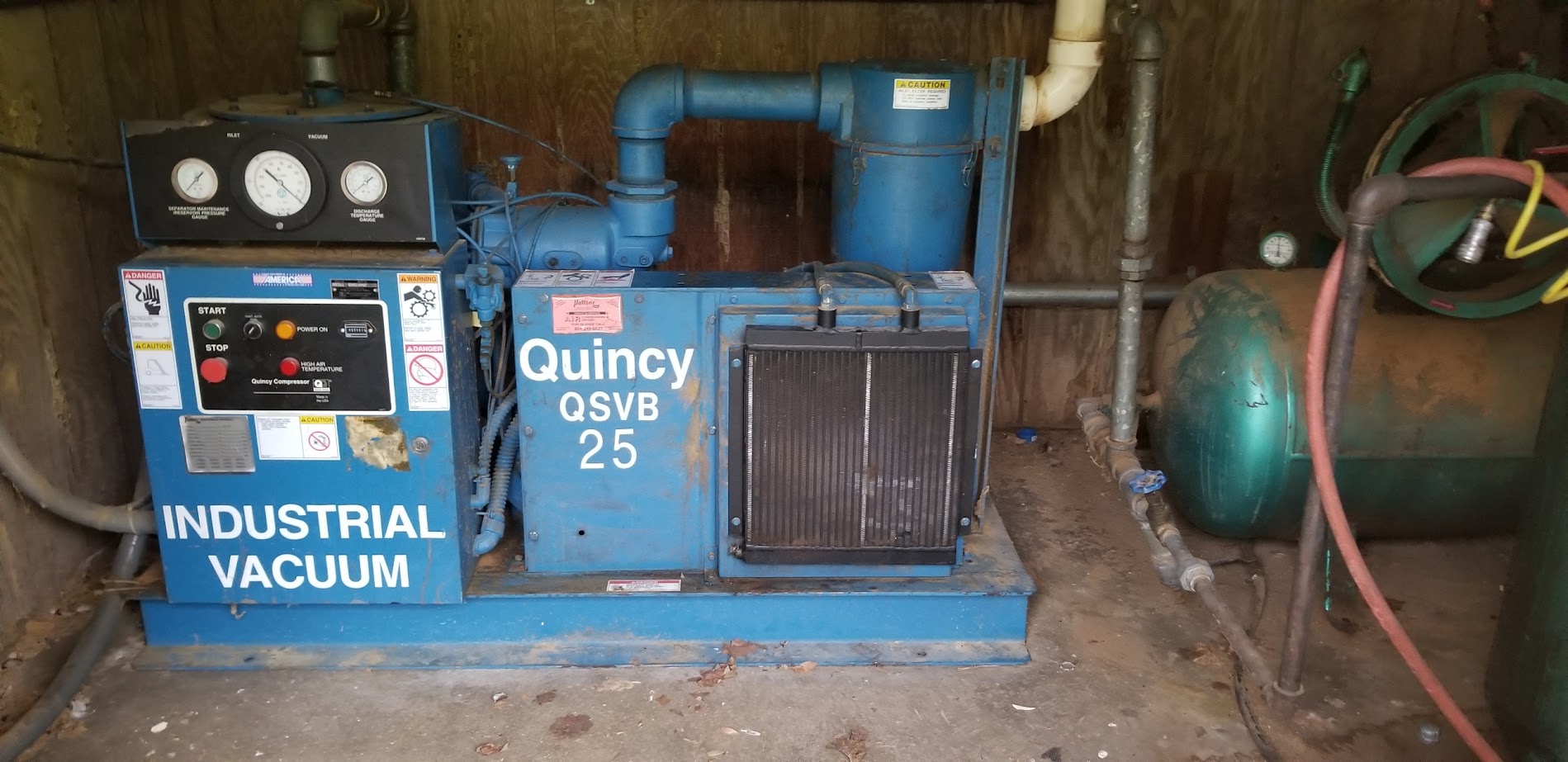 QUINCY 25 HP VACUUM PUMP WITH TWO AUXILIARY CAPACITOR STARTING KITS. GREEN ONE MODEL #PKT SERIAL #981113937. GREY ONE MODEL #SK25 SERIAL #0101-2-SK25 KVAR54 REPLACED ALL 4 FILTERS, CHANGED OIL WHICH WILL LAST 3000 HOURS. RUNS VERY WELL.