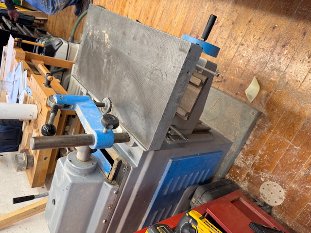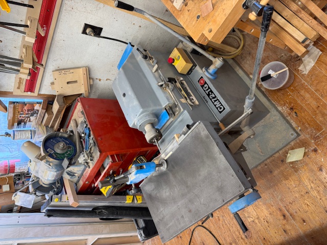 Bini Horizontal mortising machine. Slot mortiser, boring machine. More rare model with tilting table. Located in Blue Hill Maine. roughly 500, 600lbs.