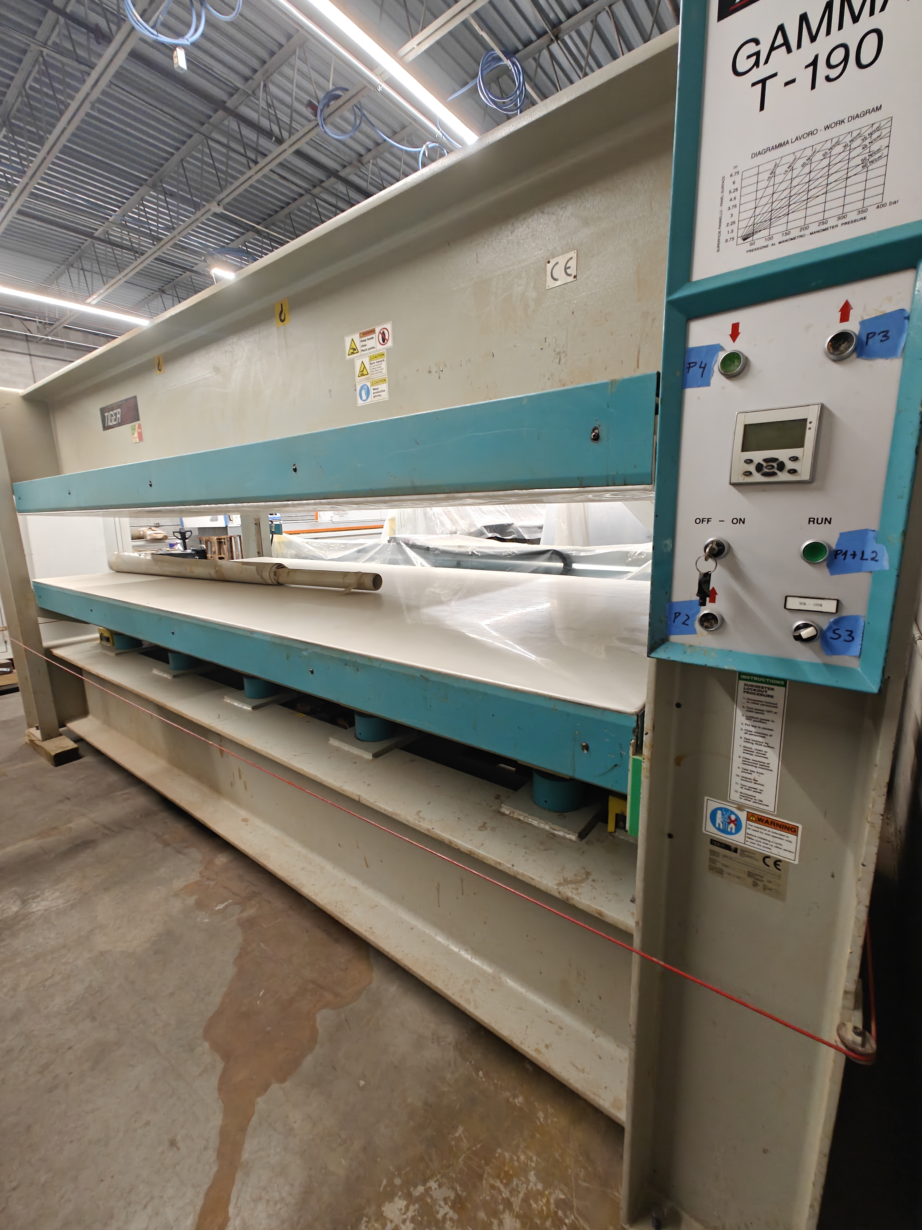 Memory for 200 programs containing different panel dimensions, laminating pressures, cycle times, and platen temperatures Automatic calculation of the hydraulic pressure based on programmed panel dimensions